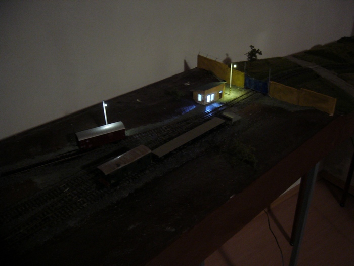 Co se tyce sestavy zhlavi na leve strane. Tak primarne je nadrazi urceno na jednokolejku, stim ze mame vleckovy areal, ktery ma na vystupu dve koleje nad sebou stim, ze ta spodni je jako prujezd pod skladisttnim arealem. Takze i to rozlozeni zhlavi tomu odpovida,kdy spodni kolej je vlastne tratova, a vrchni vede k vleckovemu arealu. Druha varianta je, ze se nadrazi napoji na dvoukolejnou trat, stim ze by se dodelala na modulu pred nadrazim druha spojka koleji (aby to krizeni bylo komplet) a zaroven by se trat zuzila na normu. Bo kluci ke kterym jsme se pripojili, maji roztec dvoukolejky 62mm, a tak na hrane nadrazi budu mit tech 62.