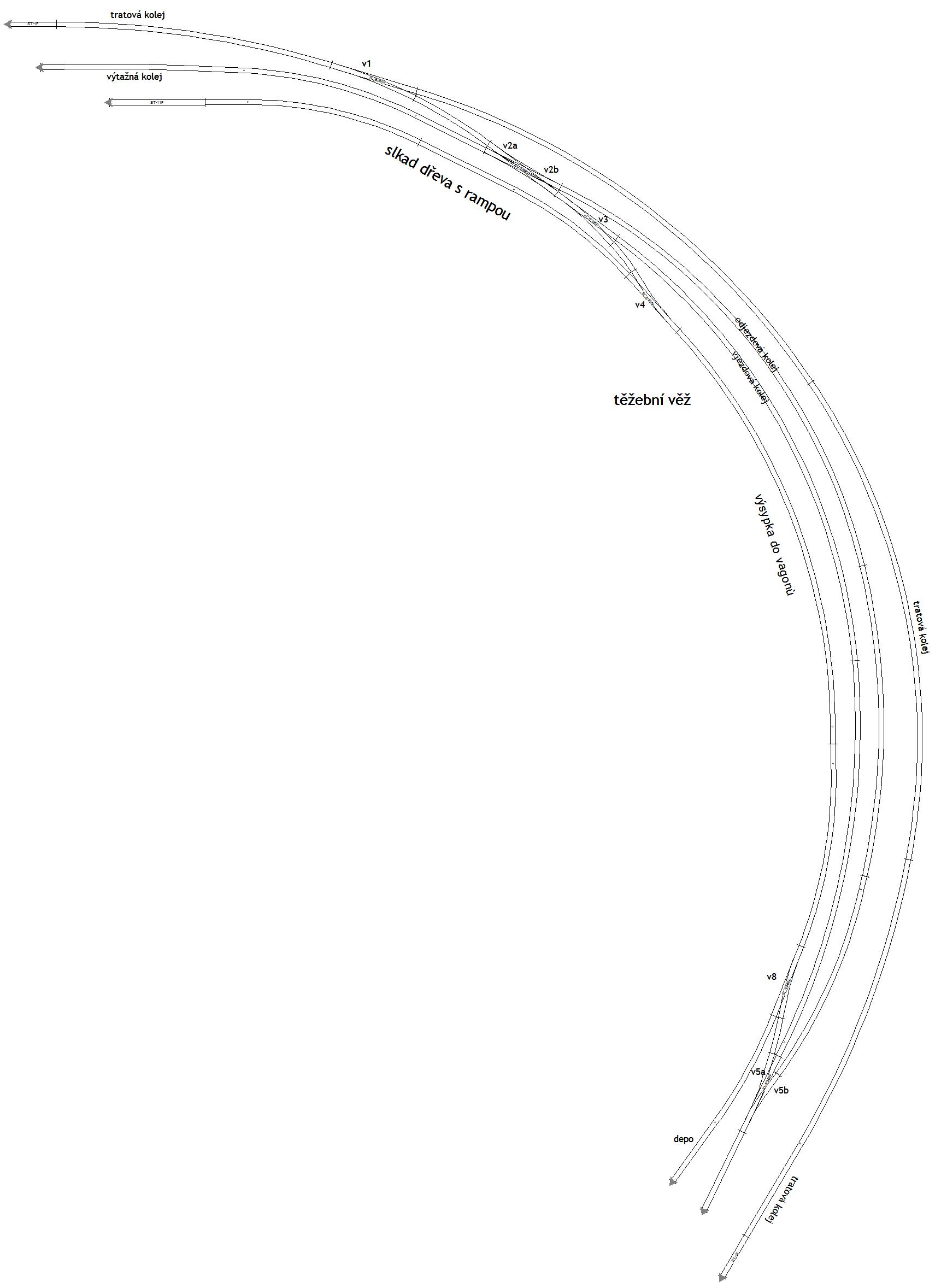 Ahoj a všem děkuji za inspiraci, fakt díky. Všechny doly na Kladensku či Ostravsku mají obrovské vlečkové areály, seřadiště apod. Tohle nechci. Volně jsem se inspiroval dolem v Lamprechticích. Cílem je, aby si strojvedoucí, který s vlakem přijede, byl schopen sám například z koleje A vyzvednout prázdné vagony na dřevo a na tu kolej dá ty, které se dřevem přivezl. Vím, že se držím při zemi, ale takové je zadání. Chci mít jak už někdo popsal spíše kompaktní vlečkový areál.