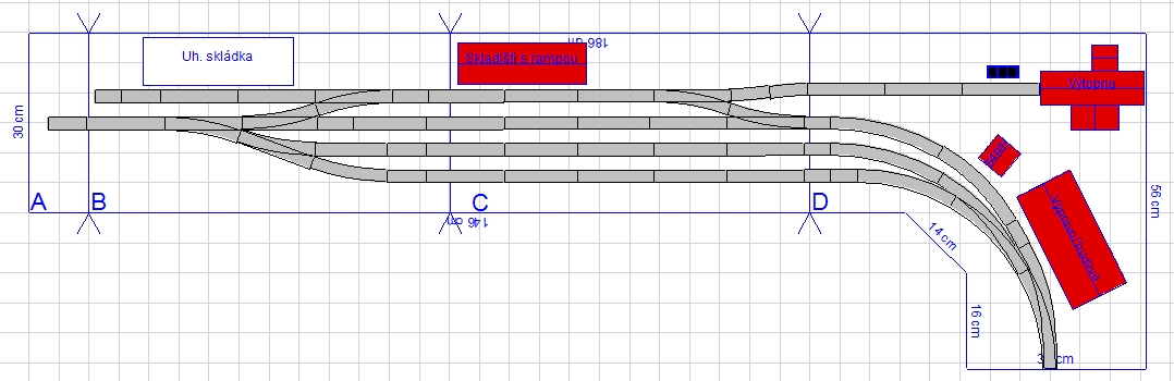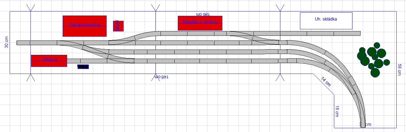 Nejsem si jistý, jestli to dobře chápu. Navrhuješ tedy, aby zleva doprava byla první umístěná uhelná skládka, potom skladiště, toalety a nakonec výpravní budova?
