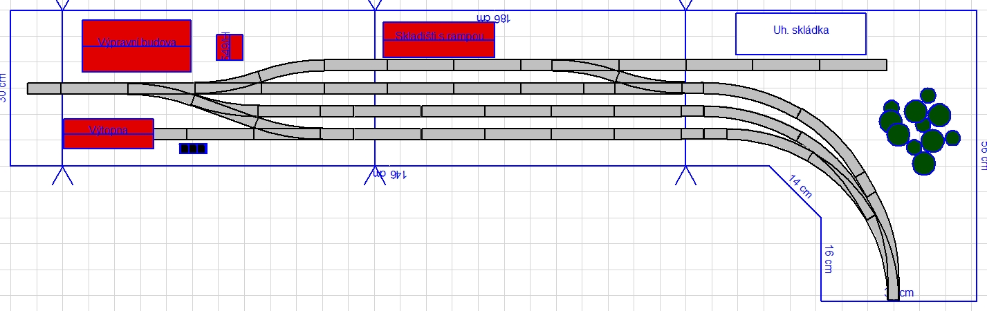 mizl píše:Co kdyby jsi posunul výpravní budovu i víc doleva a výhybku, zrušil krátkou kolej k výhybce ke skladišti a napojil jí rovnou do levého zhlaví ??? Získal by jsi delší koleje