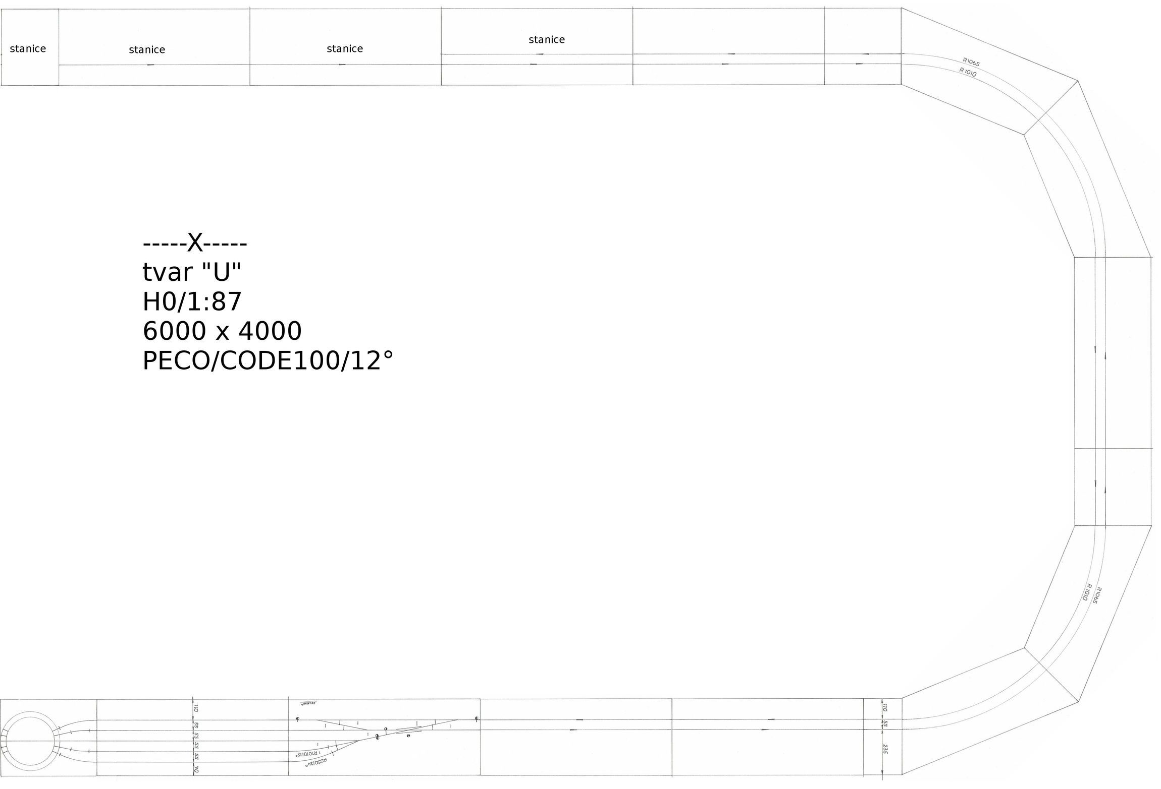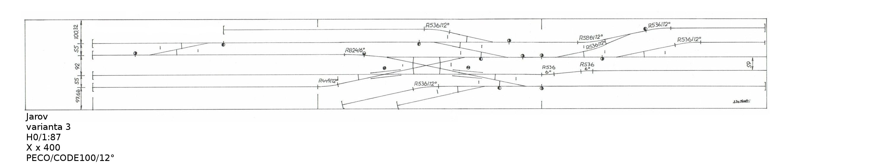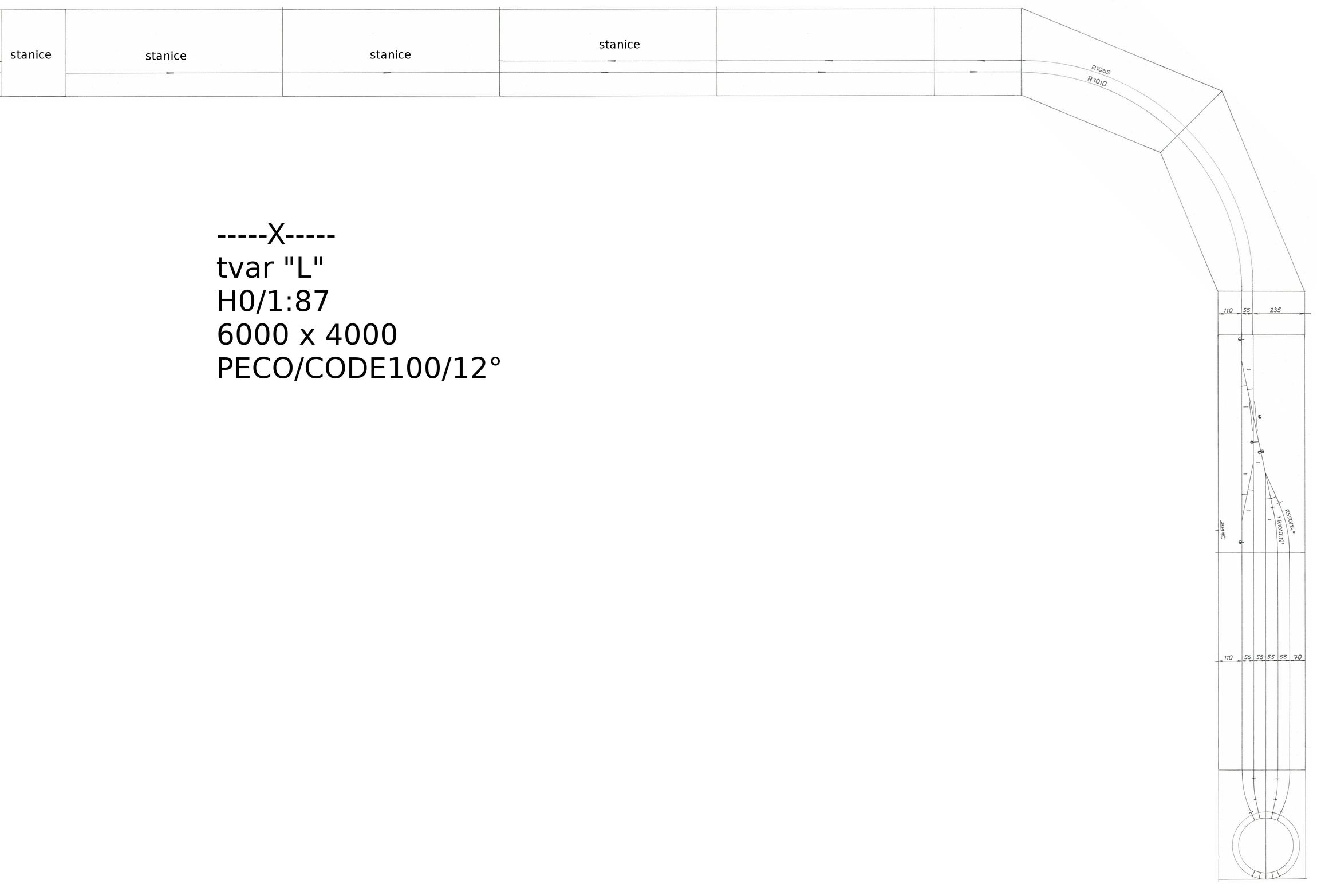 První okótována.Mezikusy - to je problém výhybek PECO.Jsou navrženy a vyráběny podle anglických standartů a norem :!: Poloměry výhybek jsou imaginární :!: