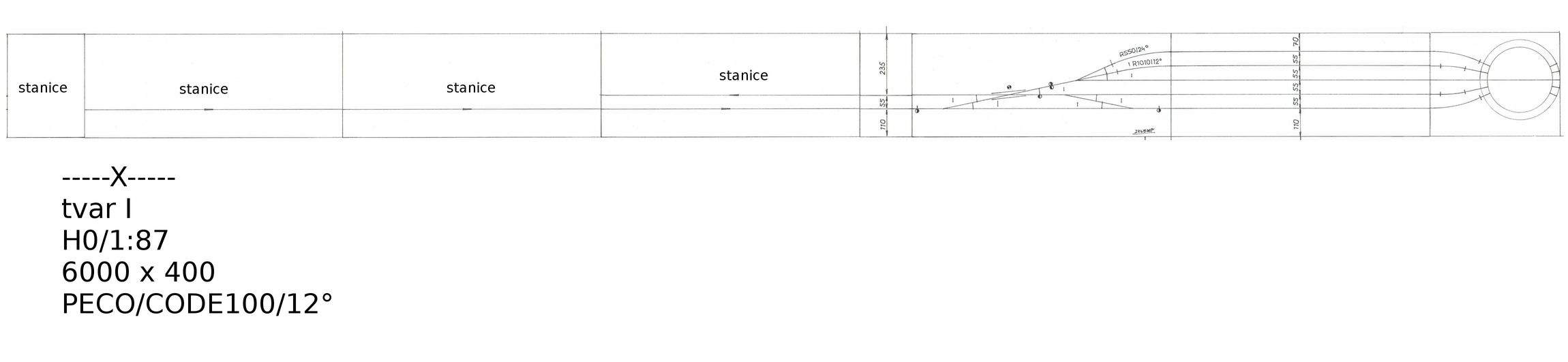 Tak toto je paráda. Kóty veľmi pomohli, ale ak spojím proti sebe dve 12` výhybky (hneď prvé dve zľava), na osovú vzdialenosť 55 mm sa neviem dostať. Vychádza to na 50,5 mm. Na rozteč 55 mm by bolo potrebné medzi výhybky vložiť strašne krátky rovný kus koľaje. Vo Wintracku používam výhybky SL-91 -polomer 610 mm, 12`. Ako dosiahnuť tých 55 mm?