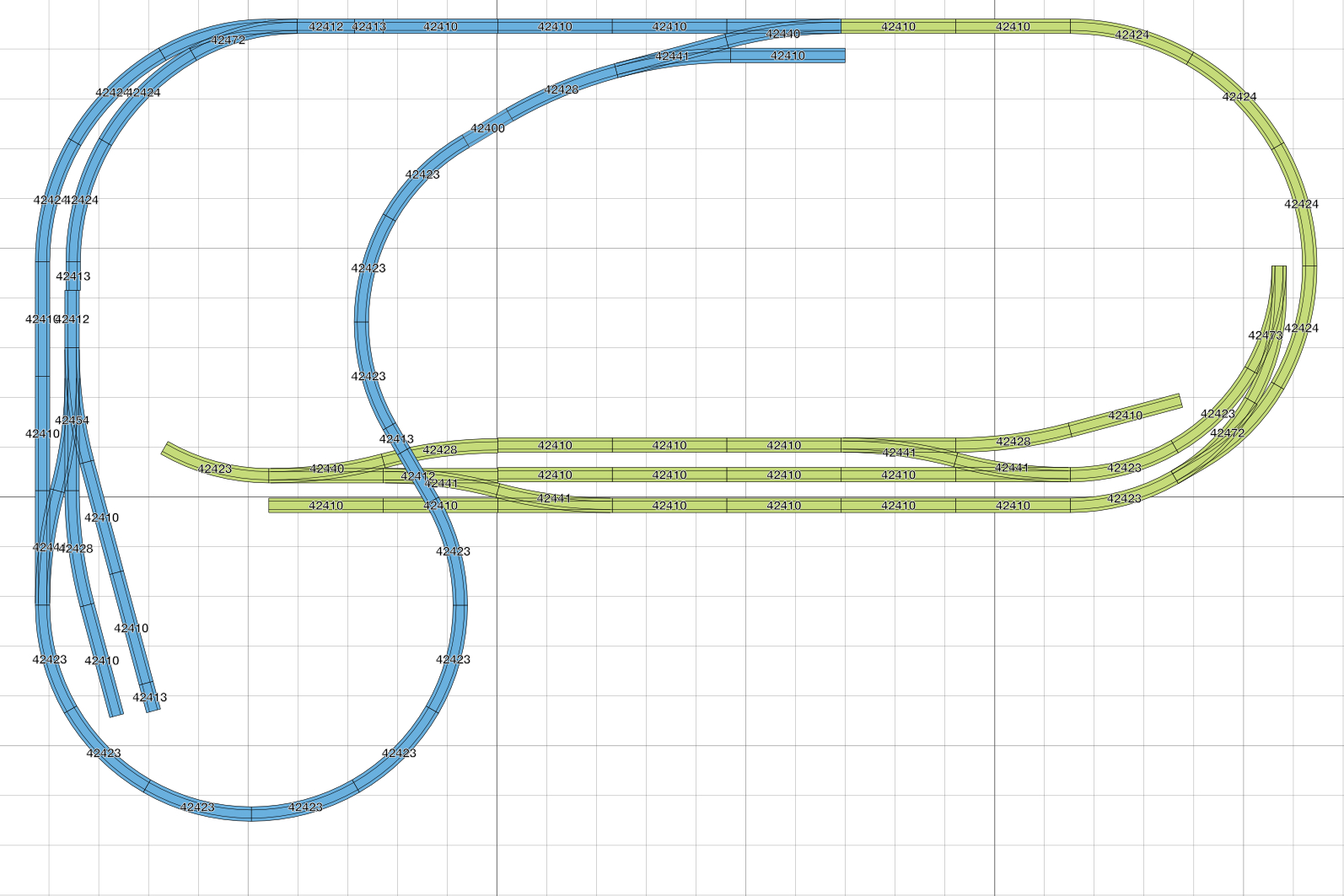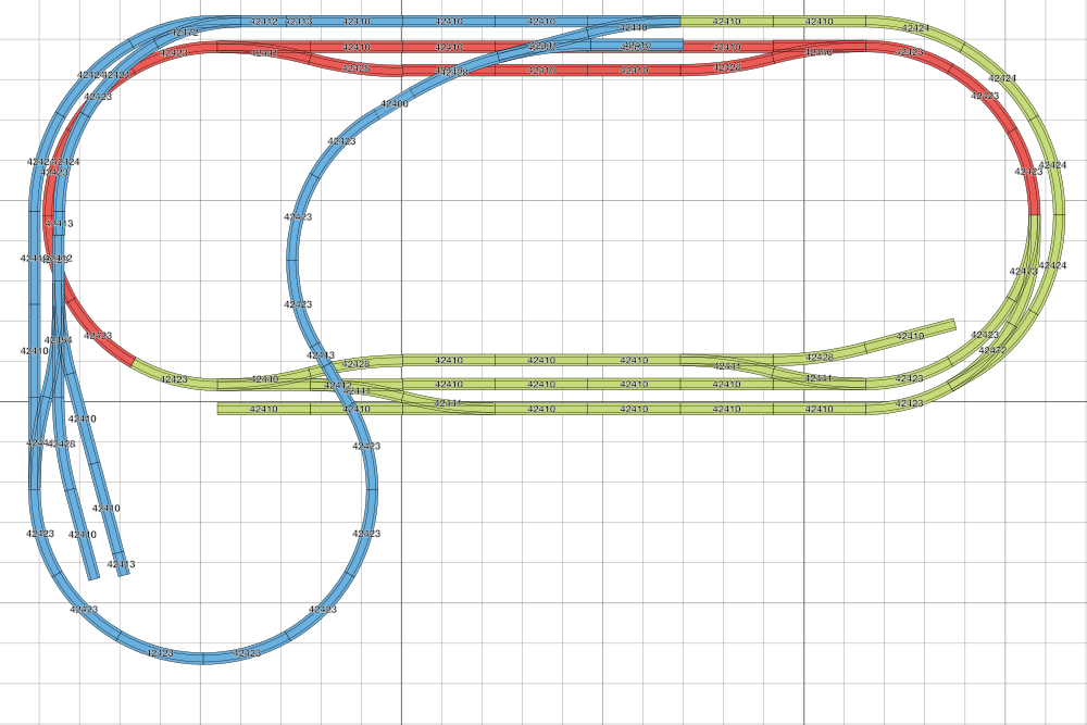 Jestli k tomu taky něco můžu. To, co si tu nakreslil, možná za týden z těch sad postavíš. Ale k řízení a další automatizaci budeš potřebovat úseky, čidla a další. A to už si vyžádá nějakou dobu (měsíc to nebude). Ale hlavně, až budeš potřebovat s něčím poradit, nevím, kdo jak čím přispěje, protože dráha má nějaké zákonitosti a ty tu jsou většině známy, takže kdokoli může radit. Ale u tebe? I na jednoduchý dotaz jak to udělat nepřijde odpověď, nebo bude nutno dodat mnoho dalších doplňujících informací, které jsou k tomu řešení nutné, ale které z této (promiň) zamotaniny nejdou určit. Obávám se, že se na tom nic nenaučíš a hlavně nic nepochopíš. To, že nechceš skryté nádraží vůbec ničemu nevadí. To, že chceš mít mnoho kolejí, může být. Ale hlavně, stanice by měla vypadat jako stanice minimálně tím, že má nějaké vjezdy hlídané návěstidly, záhlaví, zhlaví a staniční koleje. A tady je prostor vytvořit a pochopit vazby mezi nimi a naučit se je naprogramovat. Jestli je staniční kolej 2 m nebo 0,5 m dlouhá už je pak jedno. Obdobně i mezistaniční úsek. Ale hlavně, musí mít ty tři části mezi staničními výhybkami, a to záhlaví, vlastní mezistaniční úsek a druhé záhlaví. A do každého by se měl vejít celý vlak, alespoň tedy do toho vlastního mezistaničního. Zkusil bych to jinak. Klidně vlakodrom, ale s nádražími. Ne jednu zamotanou vlečku. Tady budeš stále na něco narážet a v důsledku toho tě to přestane bavit.