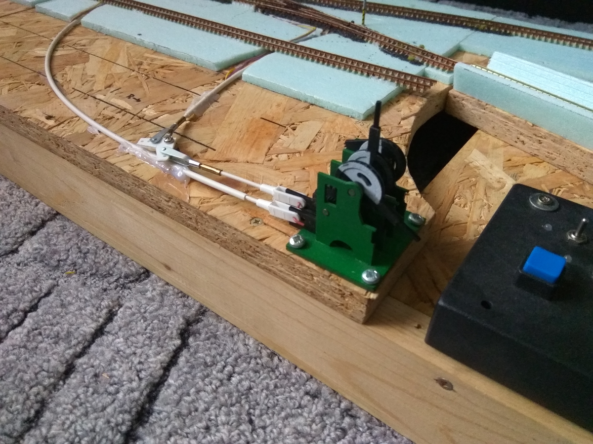 Dále ovladačem nemusí být jen táhlo, nebo točítko. Existují i systémy napodobující pákové přestavovače, nebo aspoň závaží výměnových těles. V zásadě je jedno, čím to budeš ovládat. To co potřebuješ je posuvný aretovaný pohyb a ten dělá ten přepínač, který navíc slouží i k vybavení jazyků a srdcovky, čím do něj budeš "šťouchat", závisí už jen na tvé technické zručnosti a nápadu.