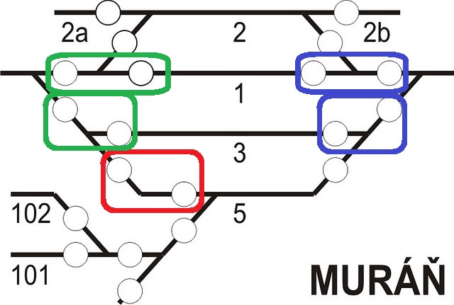 - tlačítko pod depem by mohlo být ještě spojeno s tlačítkem nad vlečkou 1, spolu by ovládaly 3 výhybky