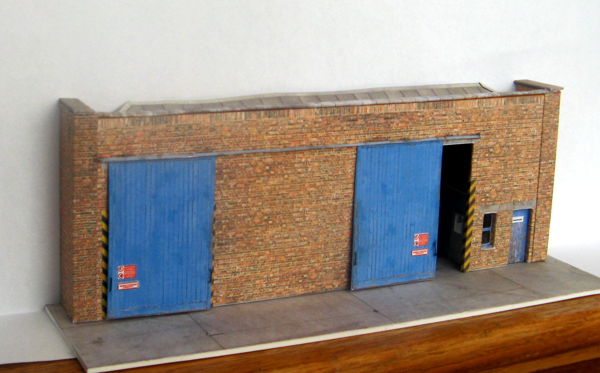 Tisk jsem nastavil na měřítko 1/87, z plánku stavby je zřejmé podlepování, já jsem použil plastové destičky z reklamních tabulí, tloušťka 0,5 , 1 a 2 mm, odřezky si vozím zadara od reklamní firmy. Zkoušel jsem podlepování papírem, ale plast je lepší - nejsou problémy s kroucením. Zkusil jsem ještě před nalepením vymačkat reliéf cihel, vrat a falců na plechu - na fotce to moc vidět není, v reálu ano.
