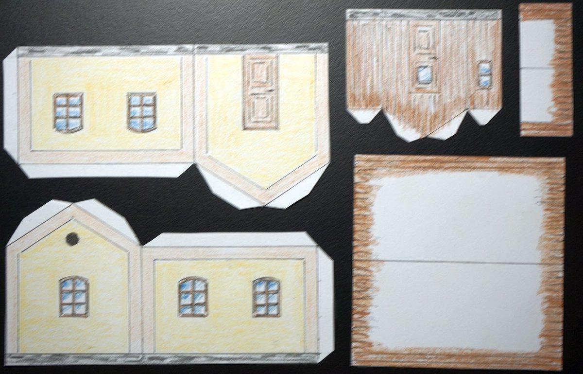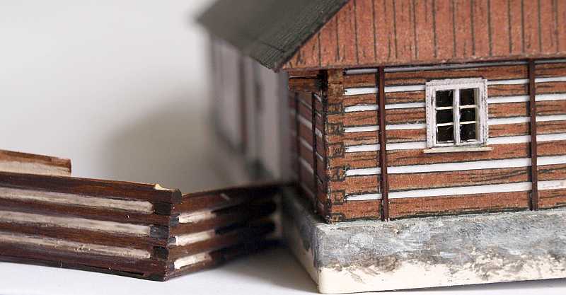 a když už jsem začal od papíroého modelu, tak porovnání špejlového roubení s tím kresleným papírovým