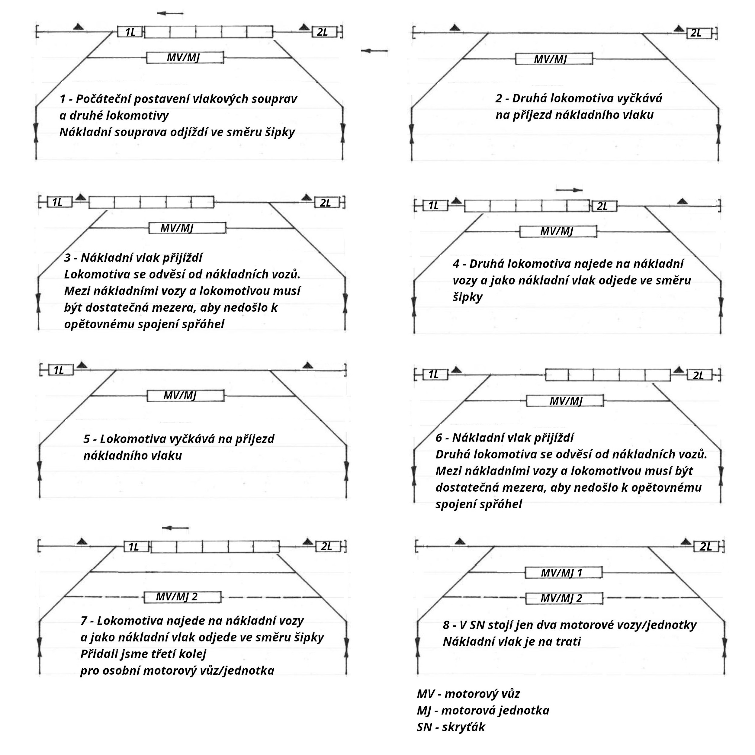 V modelovém provedení si vypomůže tím, že budeme mít dvě lokomotivy. Popis odstavení a připojení lokomotivy a jízda na trati je popsána v přílohách.