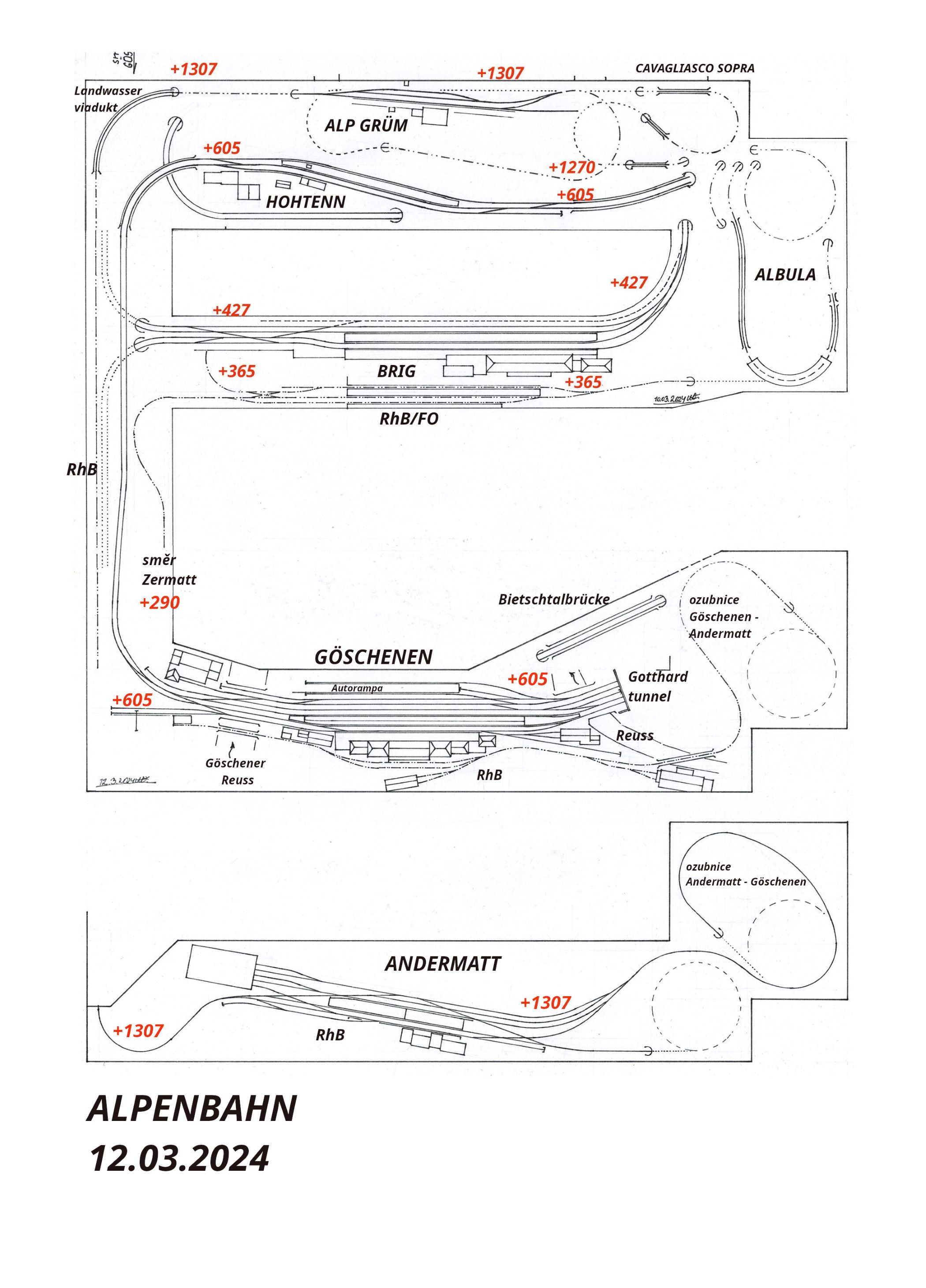 Kolejově je projekt dokončen. V sedmi SN jde odstavit 122 vlakových souprav SBB a RhB. Trochu jsem si pohrál s obrázky, jak by mohlo budoucí kolejiště vypadat. Viditelná stanice Göschenen je schovaná pod stanici Andermatt.