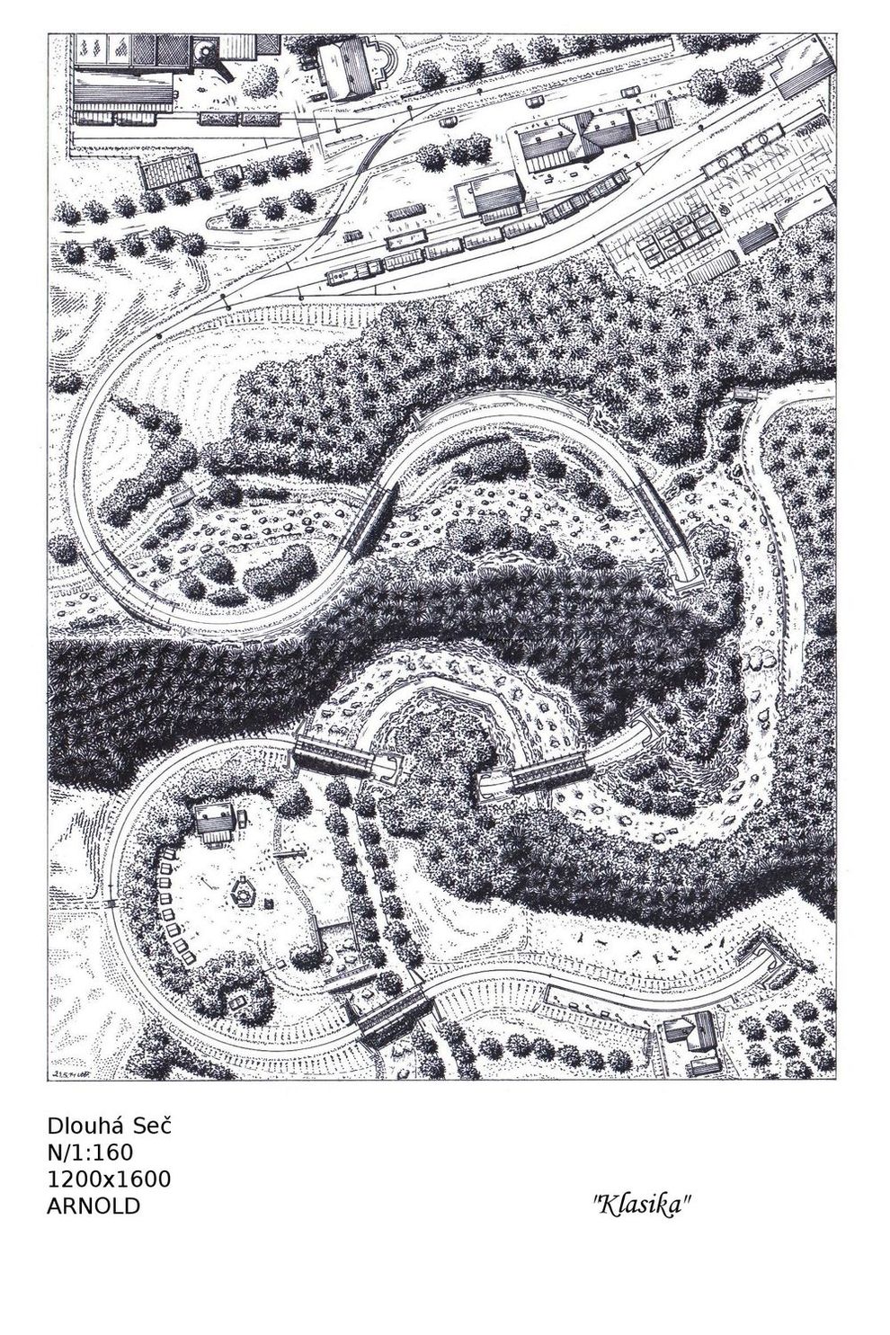 . Nás by však měla Kouřim především zajímat z hlediska železniční historie. Dráha, původně typická cukrovarsko-řepařská lokálka, sem dorazila už v r. 1881, dávno před platností českého lokálkového zákona, a to díky společnosti ÖLEG, tj. Rakouské společnosti místních drah. Ta zde vystavěla své typické patrové nádražíčko 11x11 m na tři okna s přistavěným hrázděným skladištěm a celým generacím strojvedoucích připravila místní mimořádností občasný zdroj vrásek na čelech - přímý vjezd ze širé tratě končí na manipulační koleji ve šturcu, zatímco na dopravní koleje se vjíždí odbočkami... Později trať převzala společnost StEG, a to až do svého zestátnění k 1. 1. 1908. Ještě před vjezdem do stanice se odbočí na vlečku krásného zemědělského skladiště z neomítnutých cihel, to Milan ve svém plánku naznačil jako poloplastickou kulisu, zatímco mohutný (dnes už bývalý) cukrovar s vlečkou navazující přímo na hlavní staniční kolej se mu tam už nevešel, stejně jako chátrající sklady dnes už také bývalého podniku Tuzex. V letech 1945 - 1949 tu bylo možno potkat ve víceméně pravidelném provozu válečné škodovácké motoráky M 133.0 vybavené přímo z výroby generátorem na dřevoplyn (až do jejich rekonstrukce na diesel), kořistní lokomotivy Heeresbahnu WR 360 s hydraulickým přenosem výkonu a spojnicovým pohonem (V 36 DR, u ČSD první obsazení řady T 334.0, ano, sdělení pro všechny TTčkáře: tyto stroje, než byly kolem roku 1950 předány na vlečky Benziny, u ČSD najezdily nejvíce traťových kilometrů právě ze strojové stanice Pečky do Kouřimi a tilligovský model zachycuje právě jeden z nich