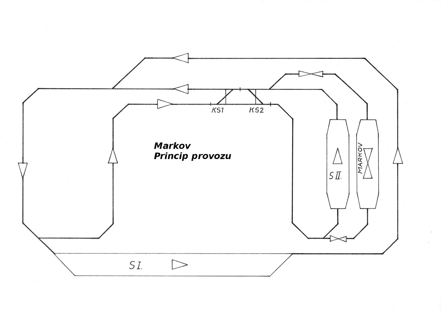 Ve stanici je čilý ruch. Na koleji 4 stojí uhelný vlak a čeká na najetí postrku k soupravě. Postrková lokomotiva jede k pra-vému zhlaví po koleji 5. Obě parní lokomotivy jsou řady 555.1. Z vnitrozemí do stanice na kolej 2 nám přijíždí nákladní vlak částečně s prázdnými uhelnými vozy a částečně loženými vozy se strojírenským zbožím. Vozy i náklad jsou určené do zahraničí, prázdné vozy pro další potřebné uhlí. Souprava je tažena parní lokomotivou řady 534.031. Na výtažné koleji 3v vyčkává manipulák tažený lokomotivou řady 524.108 do skončení odbavení rychlíku. Manipulák dokončil posun ve stanici a ještě přibere prázdné uhláky, které narychlo vytahuje z lokomotivního depa parní lokomotiva řady 310.0.