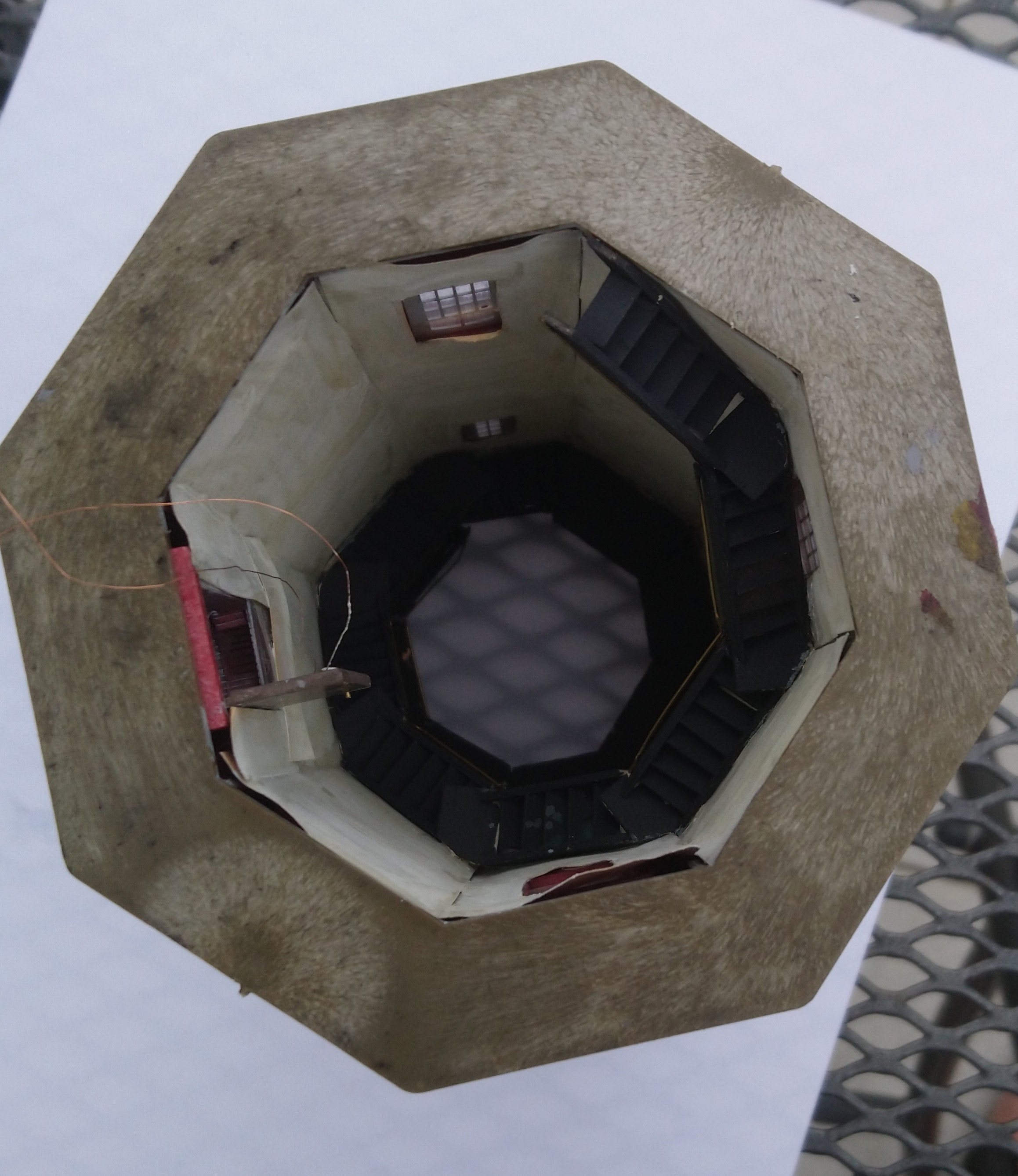 Zítra se pokusím dám nějake fotky ze stavby . Místo neprůhledných oken jsem dal průhledný plast ,vnitřek jsem obložil čtvrtkou, kterou jsem nejdřív nabarvil na kremovou a pak přetřel bílou naředěnou barvou. Udělal jsem schody vlastní výroby, sice jen nařezane a slepene ze čtvrtky ale na interier to bude stačit osvětlení uvnitř plánuji . V horní části bude nádoba na skutečnou vodu a ze spodu nádoby budou čtyři trubky na vodu 2 na odkalovaní slepe .Pak jedna na táhnutí vody a jedna na vypoutění vody . tak jako je to to zde . https://www.youtube.com/watch?v=zmHJjB4sTpA na tuhle krásnou vodárnu si taky brousím zuby .