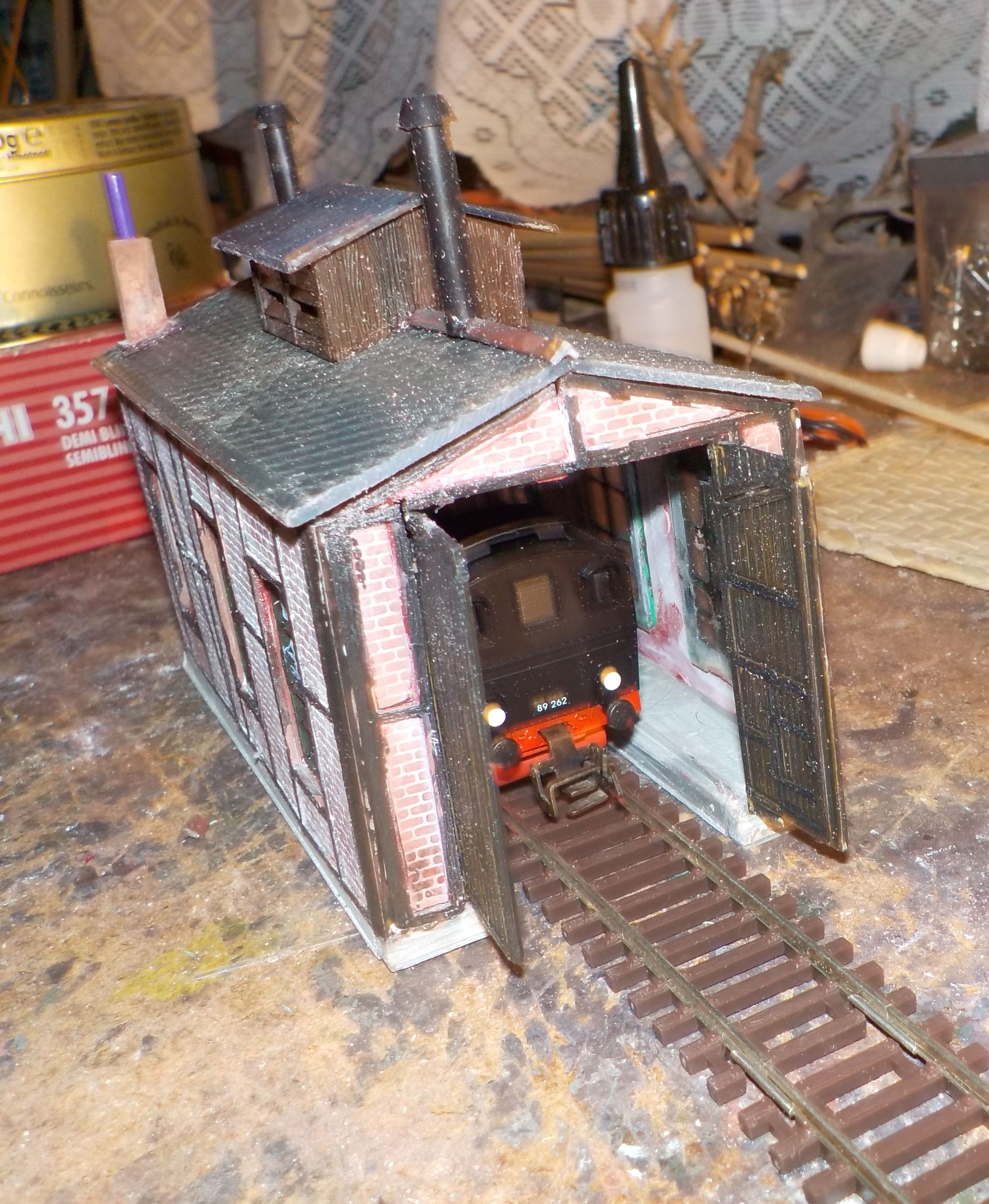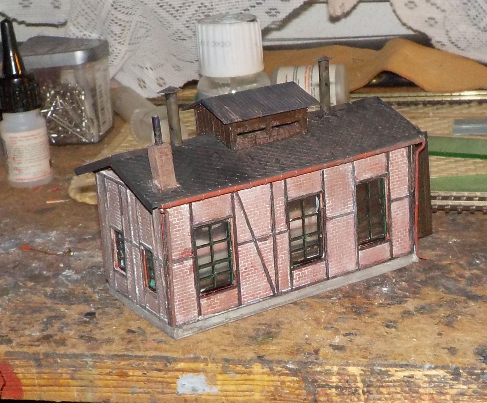 Střelec píše:Tohle je rychlá nouzovka, co jsem musel stihnout, dokud jsem na to měl náladu - cca tři večery. Časem snad bude k mání něco, co stylově i materiálem (laserované dřevo - lepenka) půjde ke zbytku budov v plánované stanici. Vyspárování cihel olejovkou mě nějak minulo. Plochu natřenou barvou cihel zapráším bílým pigmentem a po nějaký době přetřu navlhčeným papírovým kapesníkem. Zbytek se do dalšího večera pěkně zažere a pak se to s proměnlivou intenzitou lízne "špinavým lakem". Značky, případně i interíér budu řešit až kolem stavby segmentu, rozhodně ale nebudu dovnitř instalovat šturc.