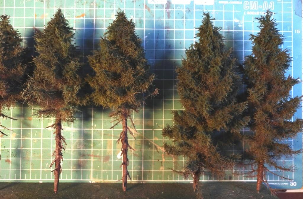 K již prezentovaným smrkům jsem musel ještě dodělat nižší porost, abych mohl udělat pěkný okraj lesa. Zase metodou dle Stummifóra - jde to, šly by touto technikou i ještě menší kusy. Doufám, že už mi to na nějakou dobu vystačí...