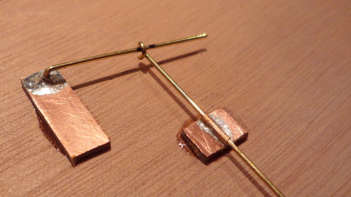 Převod pod výhybkou, volný konec je ohnutý a spíná mikrospínač