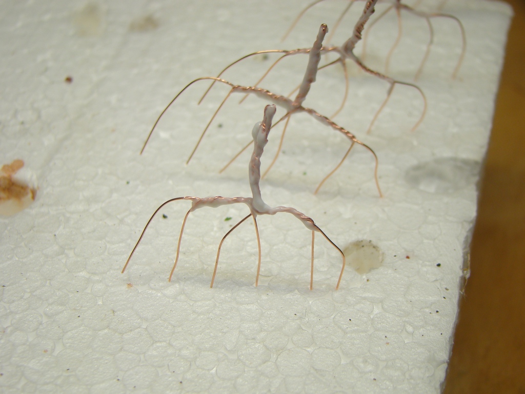 Samotnou rostlinu bych dnes asi znázornil tak, že z tvrdého bych vyrobil jen hlavy a tažně. Odrosty bych dělal s olistěné nitě a do drátů ji všelijak v plétal.