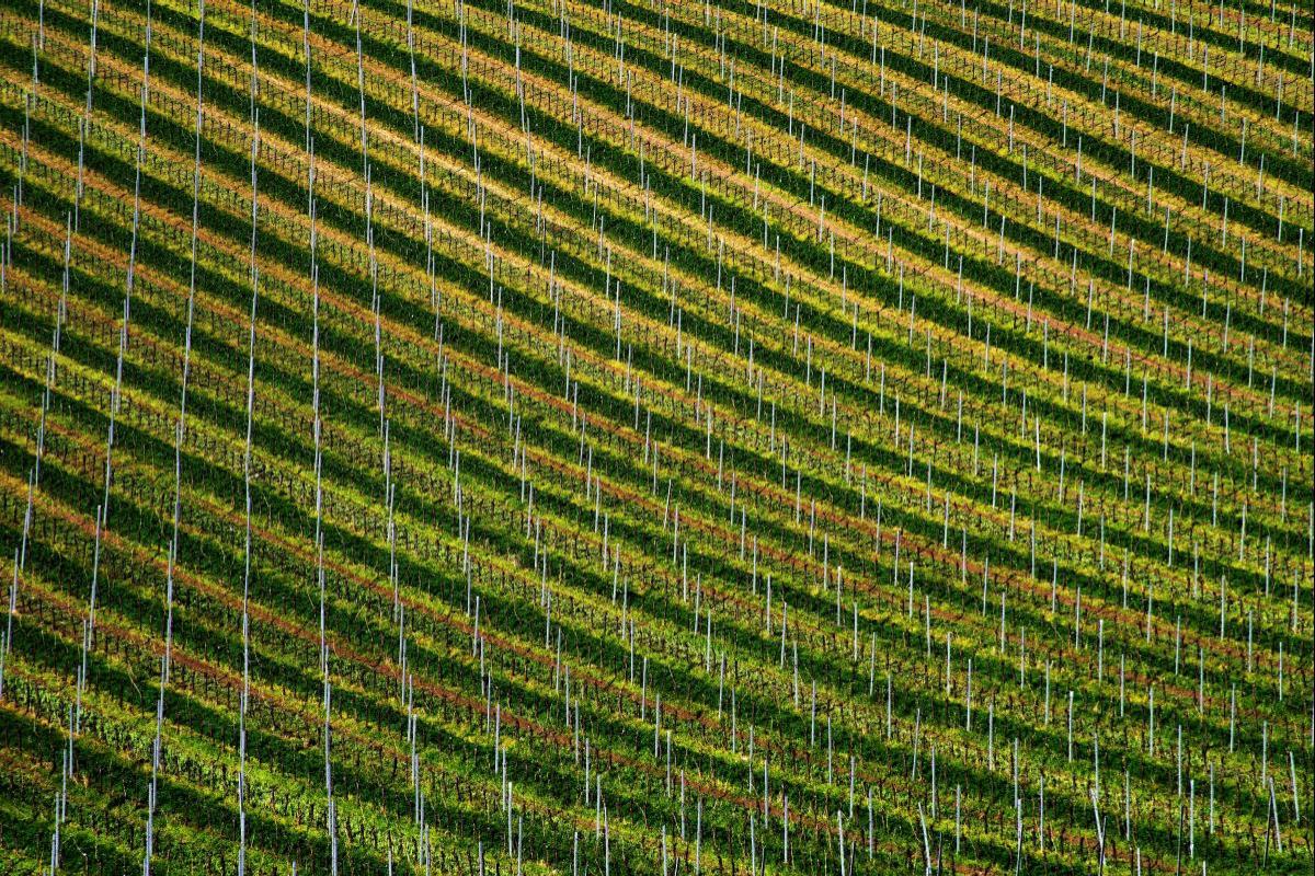 jsem přímo z vinařské vesnice, tak zkusím reagovat. Na první pohled jsem ve tvém výtvoru vinohrad poznal, přesto mi to o něco víc ( a čím víc na to koukám, tak...) vidím jablečný sad pěstovaný na drátech. Sorry. A chvíli jsem přemýšlel proč, a asi jsem na to došel. Vinná réva oproti jabloním mají podstatně větší listy, které vytvoří takovou skoro stěnu.