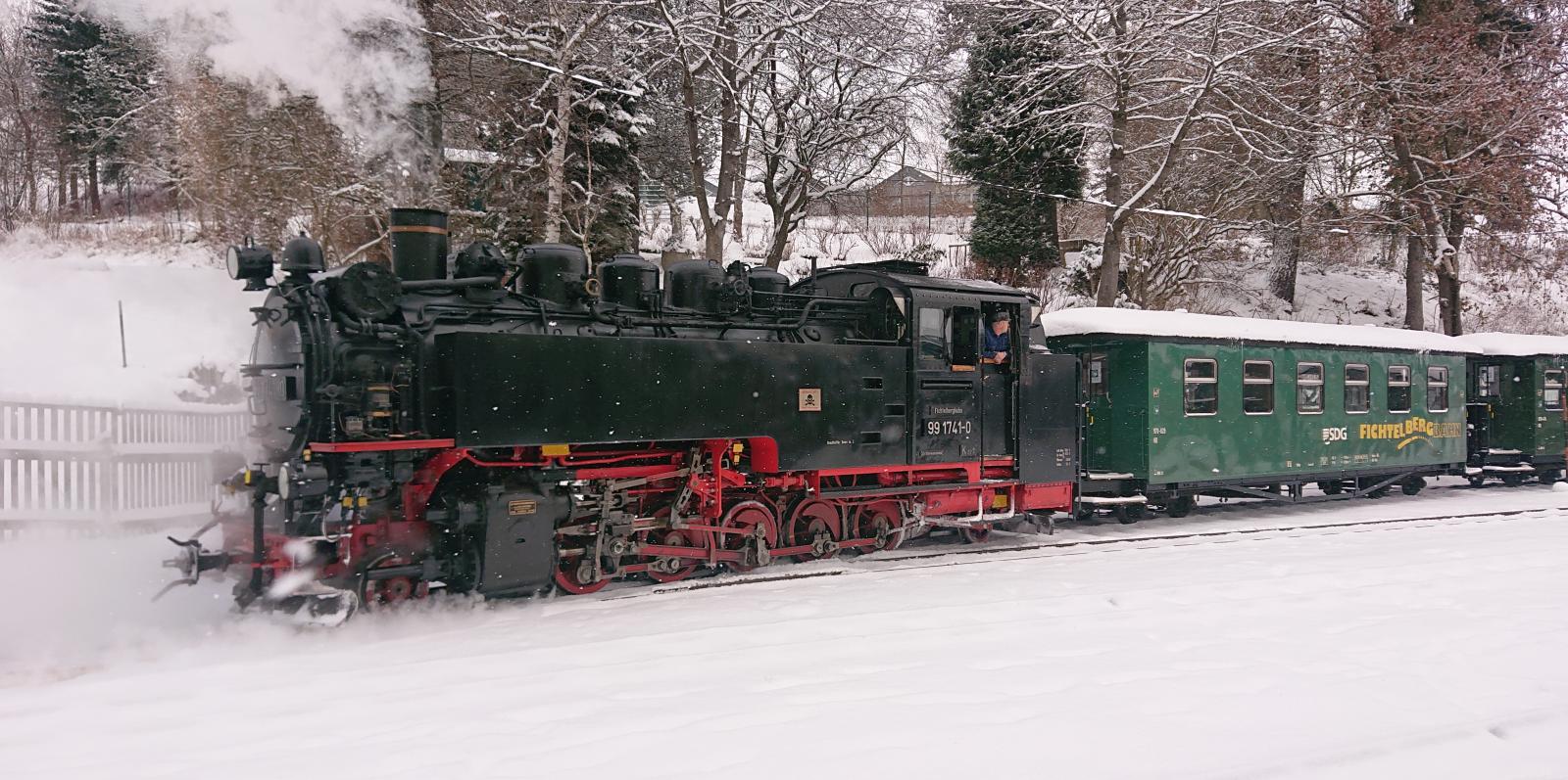 Pro inspiraci fotka z prosince 2022, Oberwiesenthal, Fichtelberbahn, byla předtím chumelenice.