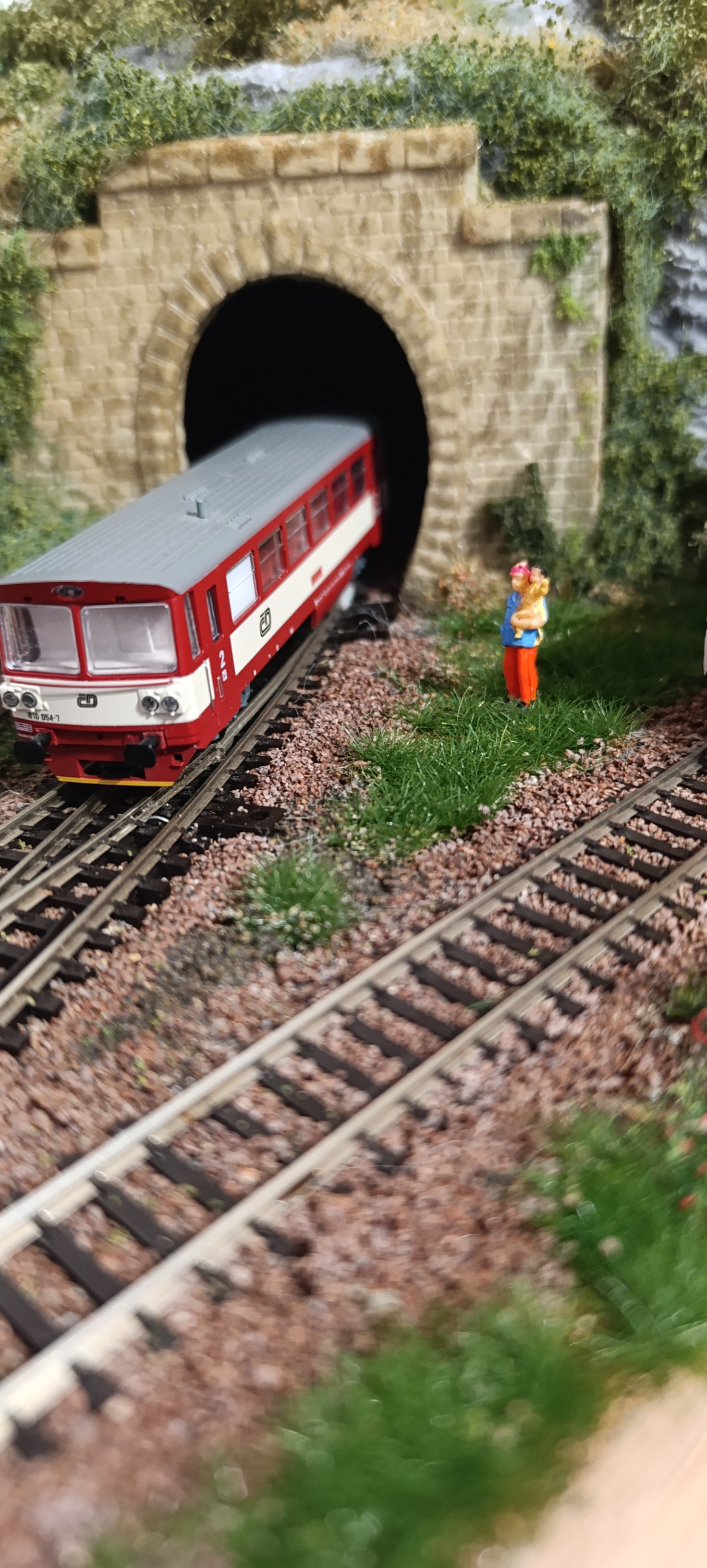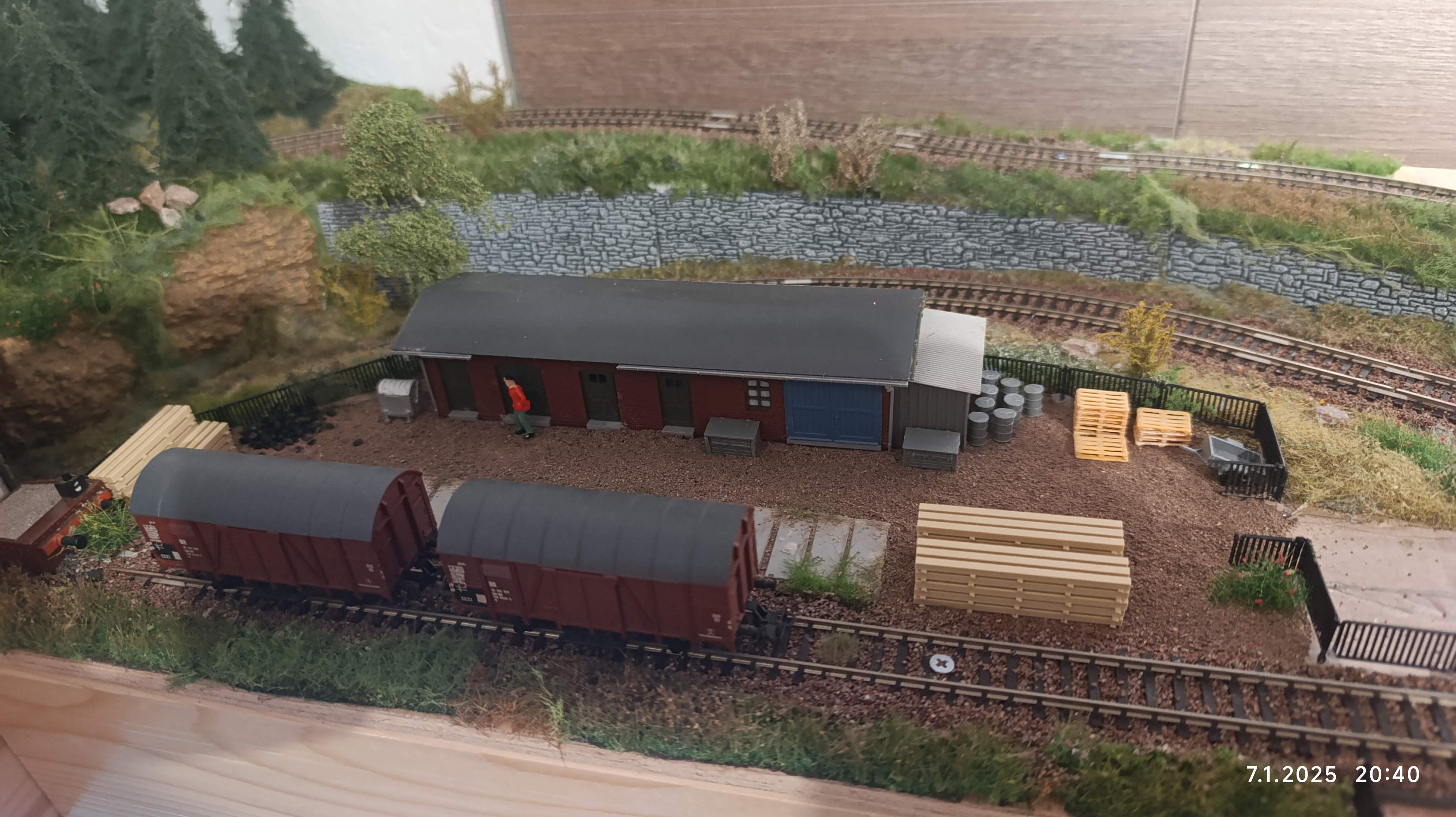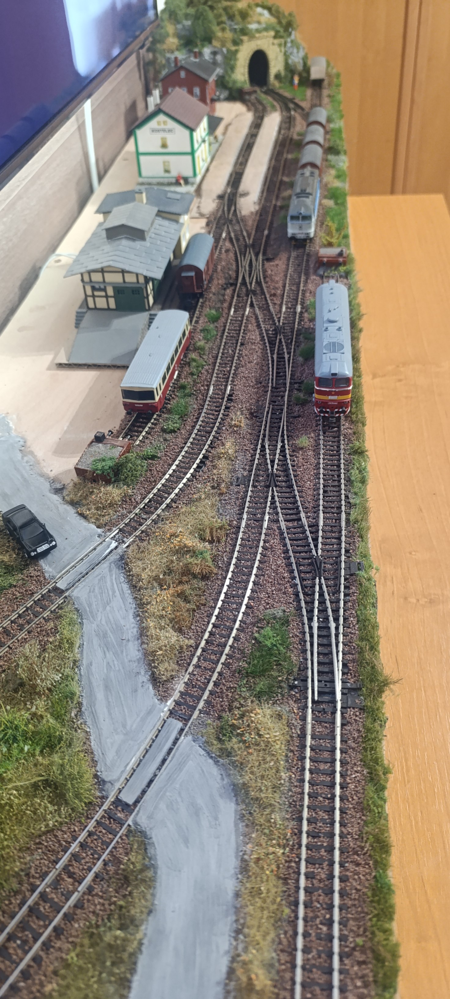 Jestli můžu ke krajině... vzal bych nějaký prach a přesypal jím komunikaci a prostor kolem stanice. Takhle je to moc hrubé a působí to jako štěrk. Pak ještě nějakou zelenou drť (velmi doporučuji woodland scenic, má ho třeba mnitka) s trochu tím rozbít přechody zeleň-nezeleň a něco i do koleje. Natřít koleje. Bude to fakt parádní. Jestli ale předbíhám, tak beru zpět. :wink: