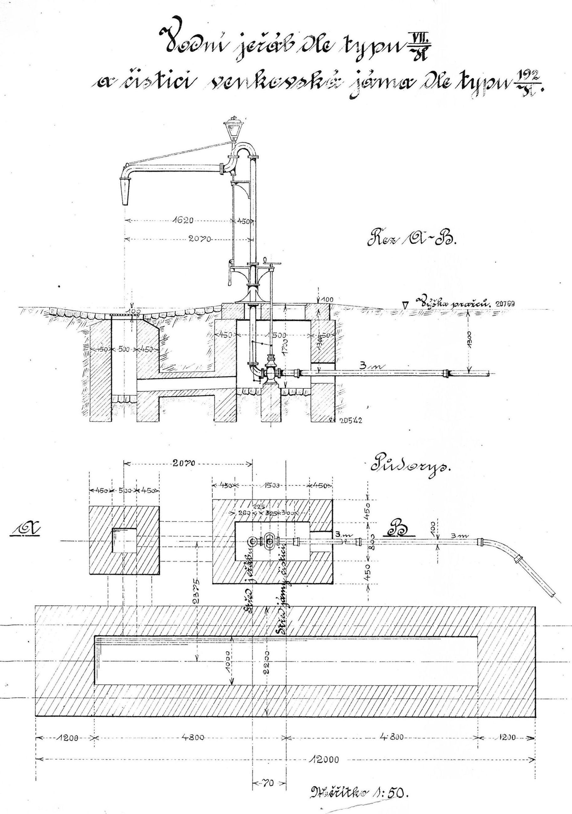 Vodní jeřáb s popelovou jámou ("kanálem"):