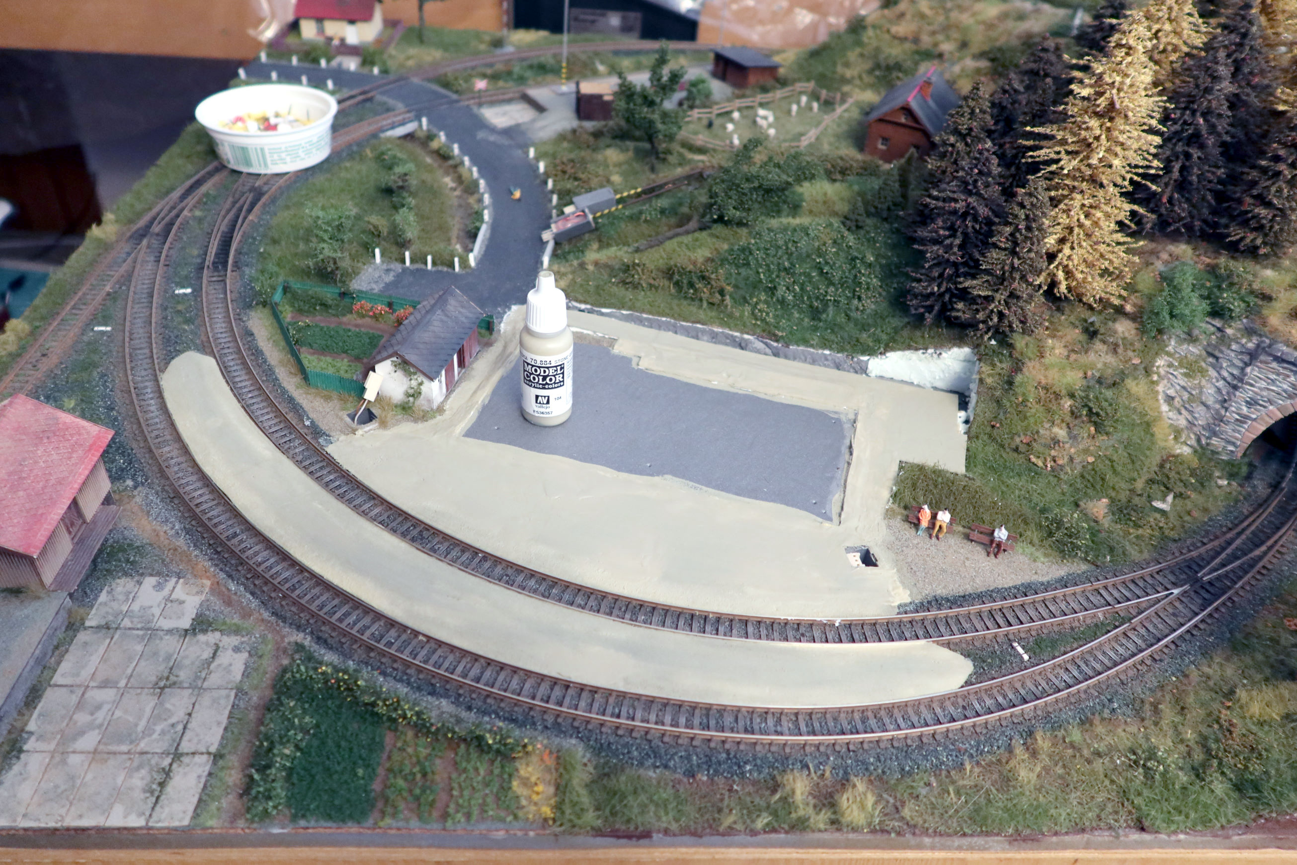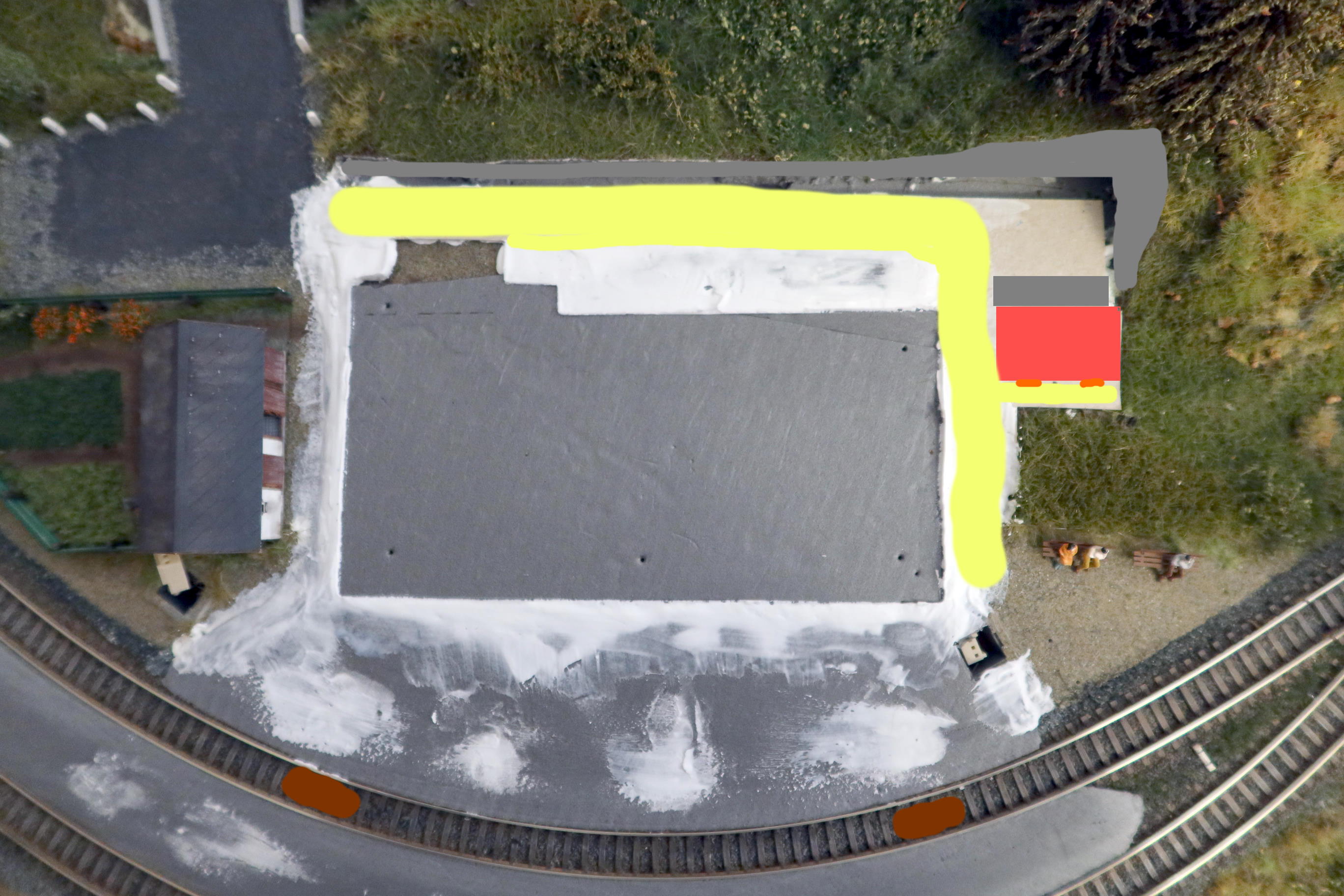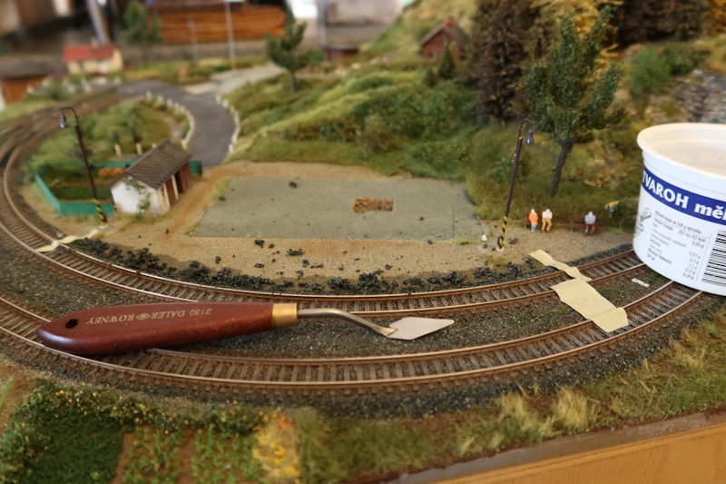 Aktuální postup a stav je následující. Dokončil jsem nahrubo povrchy perónu a okolí budovy
