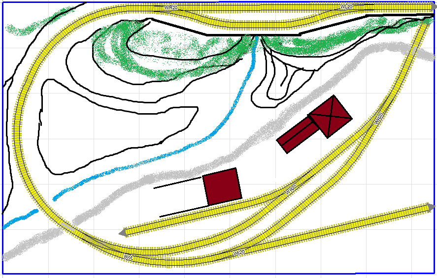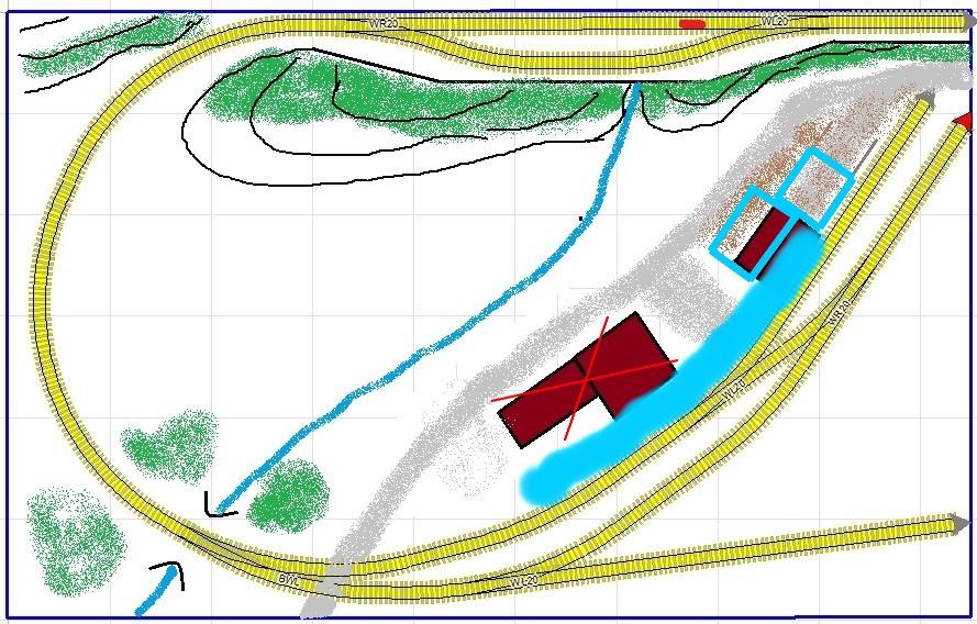 Budovu se skladem jsem zamýšlel, ale to bych nemohl objet motorákem přívěšák, kdyby tam stál vůz. A kloudnou variantu s kusou skládkovou kolejí a výpravní budovou kombinovanou se skladem jsem nevymyslel.