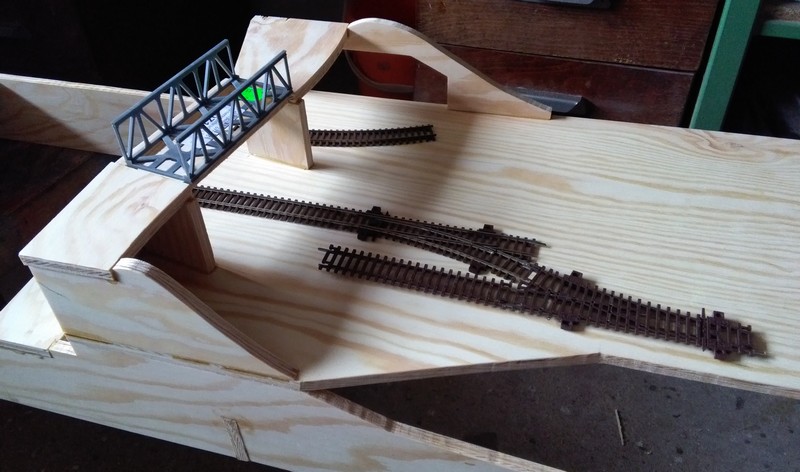 Kousek zalesněného svahu bude lepší a v protějším kopci je ještě schovaná kolej pro lokomotivu. Ta bude sloužit k objíždění soupravy v SN abych nemusel vyjíždět na volnou trať pod most. :wink: