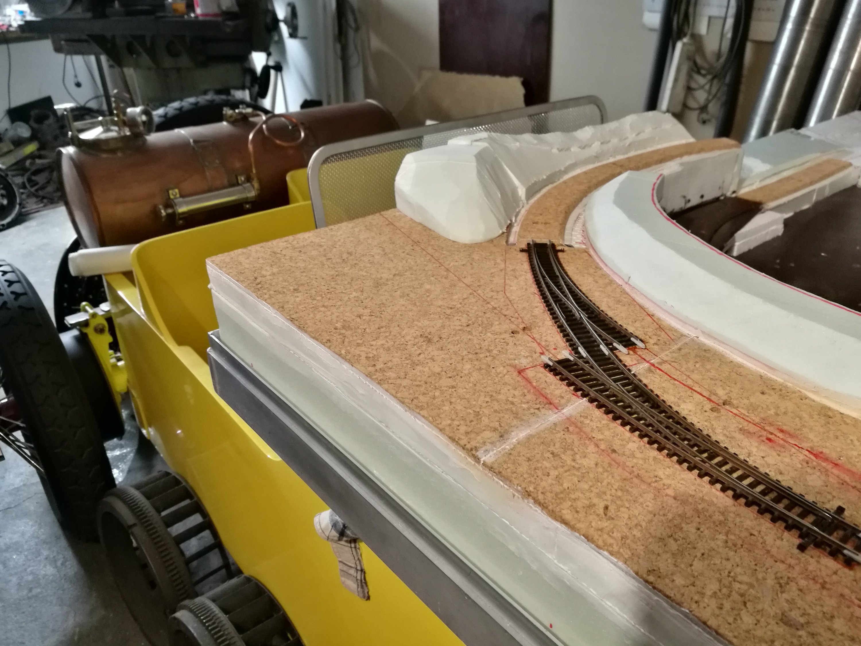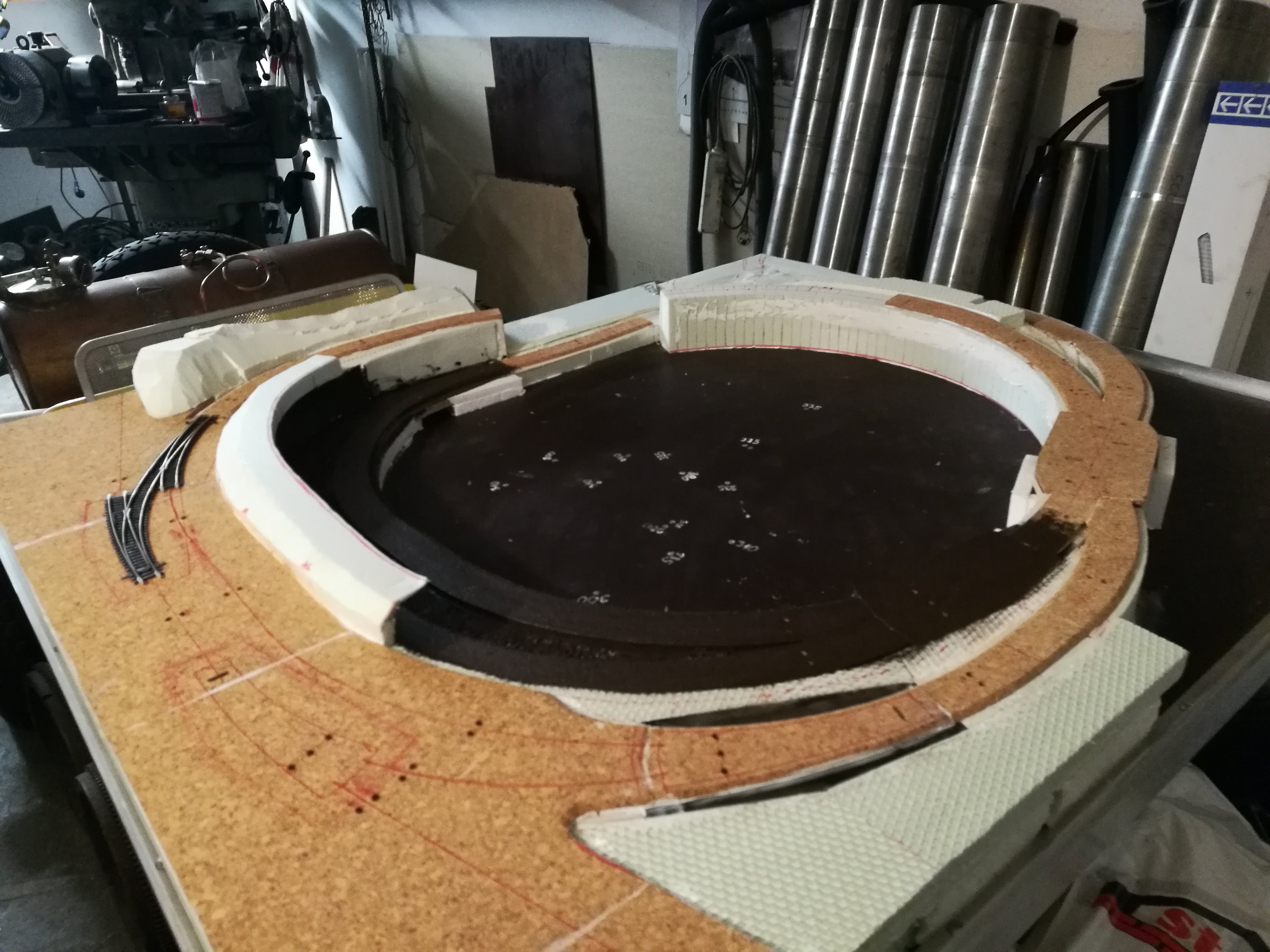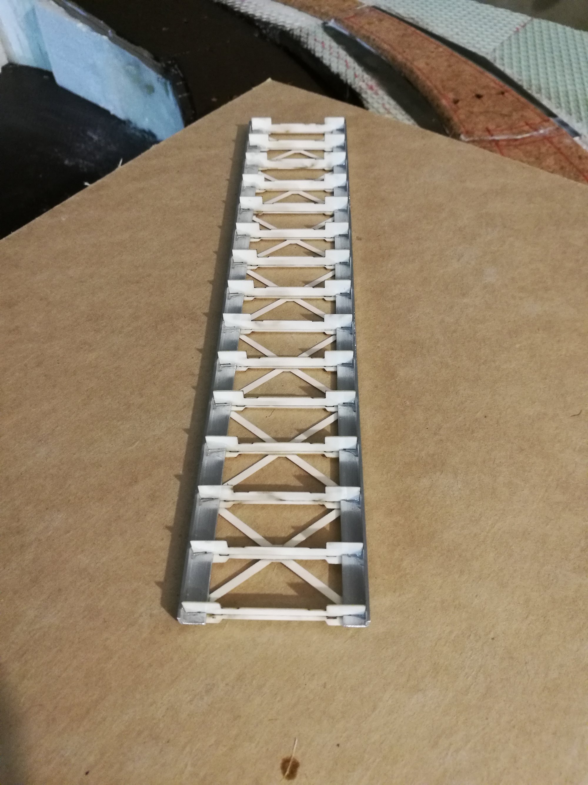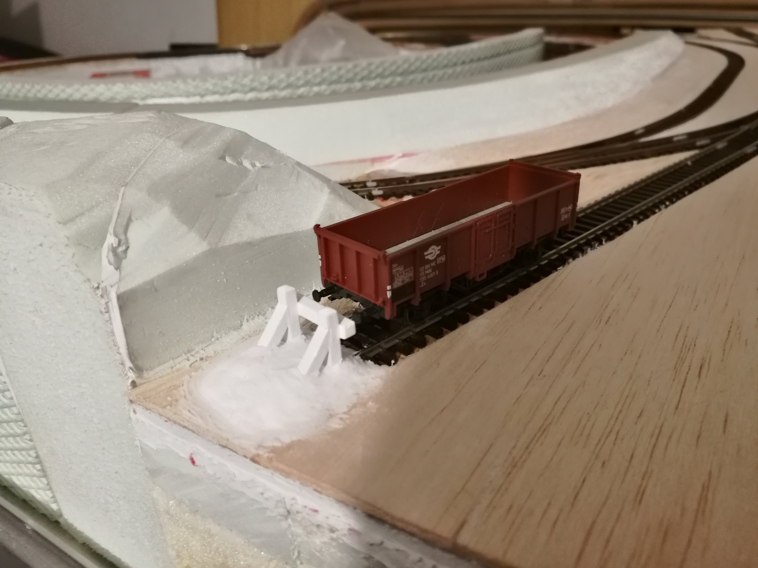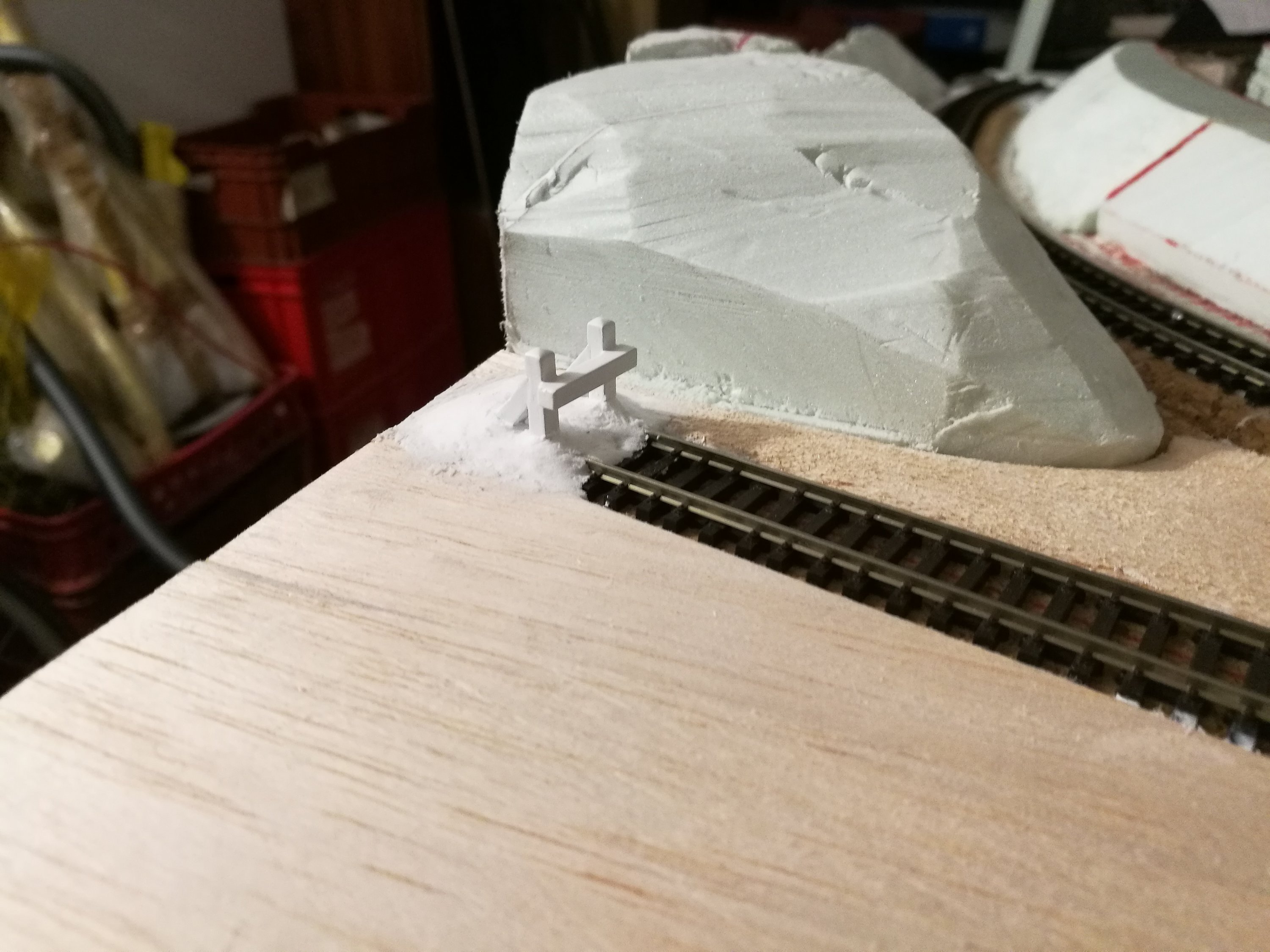 Upravil jsem obloukové výhybky a angličana. Provedl jsem korkové lože pod kolejnice a stavěl kamenný most a most od KB model, který jsem trochu upravil výměnou hlavních nosníků z kartonu za hliníkové a krablovaný plech za desky. Taky vznikla popelová jáma a na druhé straně dřevěný šturc. Jinak úprava výhybek přinesla vynikající jízdní vlastnosti vozidel.