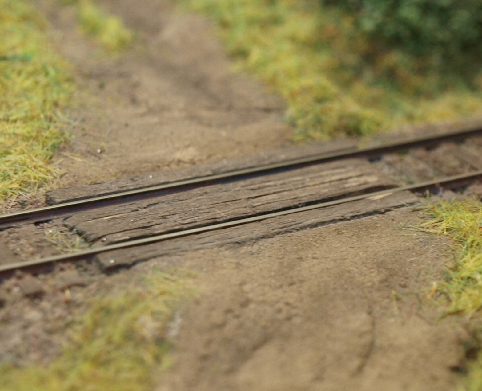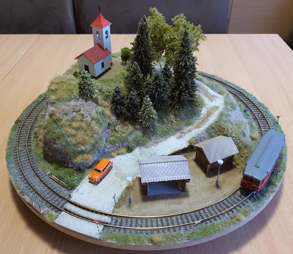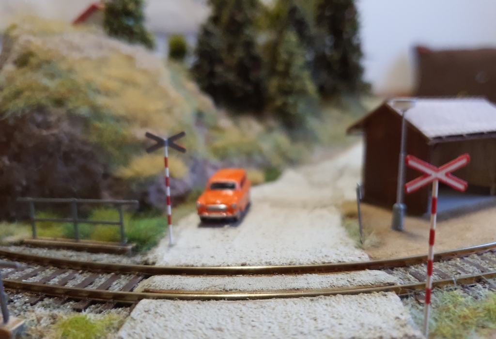 Přejezd byl žháves, reálně má imitovat výše zmíněnou variantu a sice asfaltový povrch (v mém případě hodně vybledlý) mezi kolejnicemi - stejně jak jsem to udělal v Neklech: