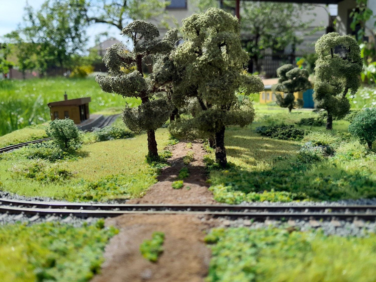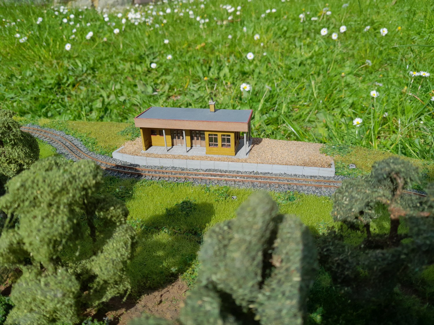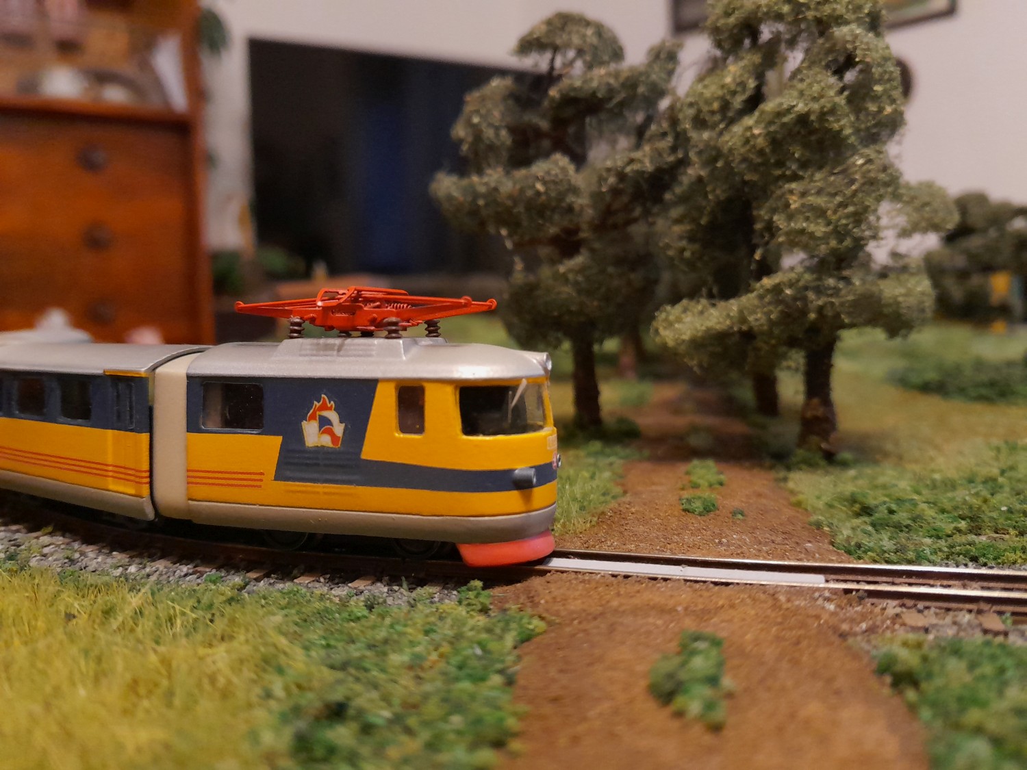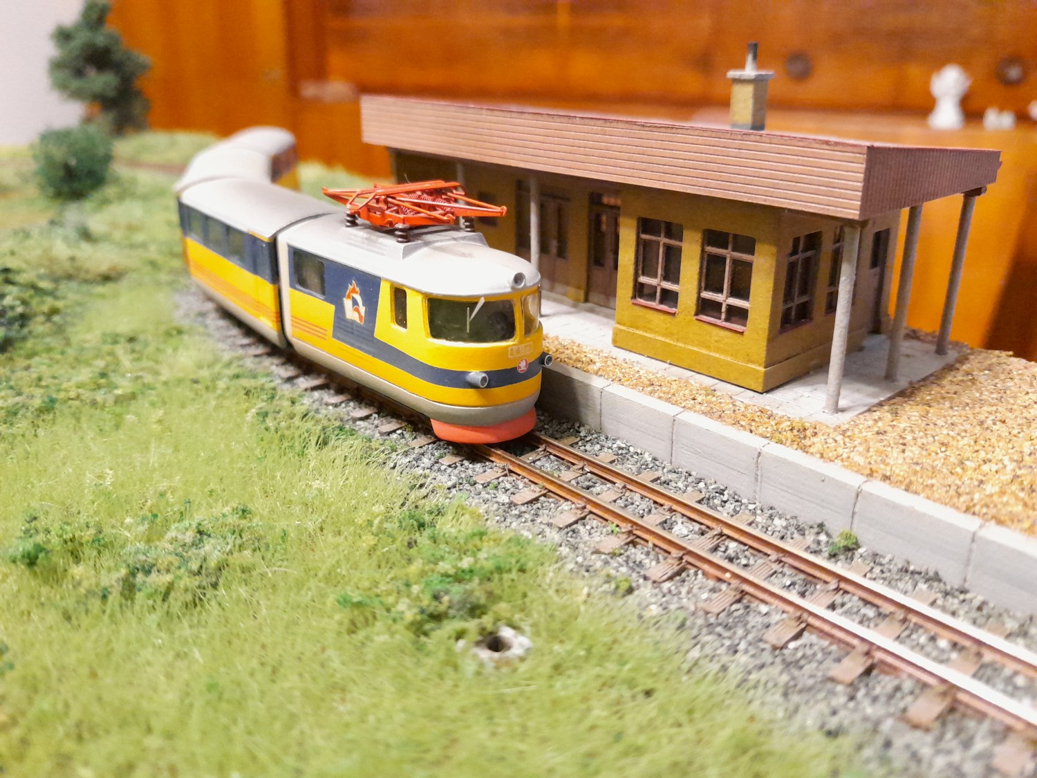 Moc jsem od září nepokročil, resp to není moc vidět... Kolejiště je kompletně zapojené. Trakce i příslušenství jsou v DCC, sice se to zdá pro takové mini jako luxus, ale analog bych už nestavěl. Jednotka měla maximální rychlost 30km/h, to v kombinaci s mini provedením nutně znamená zpomalí v dekodéru. Kvůli jízdním odporům sbírám proud pouze ze dvou hnacích dvojkolí a zde velmi pomůže powerpack. Výhybka má izolovanou srdcovku a není problém s jízdou na minimální rychlosti. U příslušenství je zase výhoda ve snadném nastavení servopohonů. V kolejišti mám zabudovaný zesilovač ROCO 10761 a pro ovládání připojuji jako centrálu multimaus. Příslušenství ovládám přes TCO.