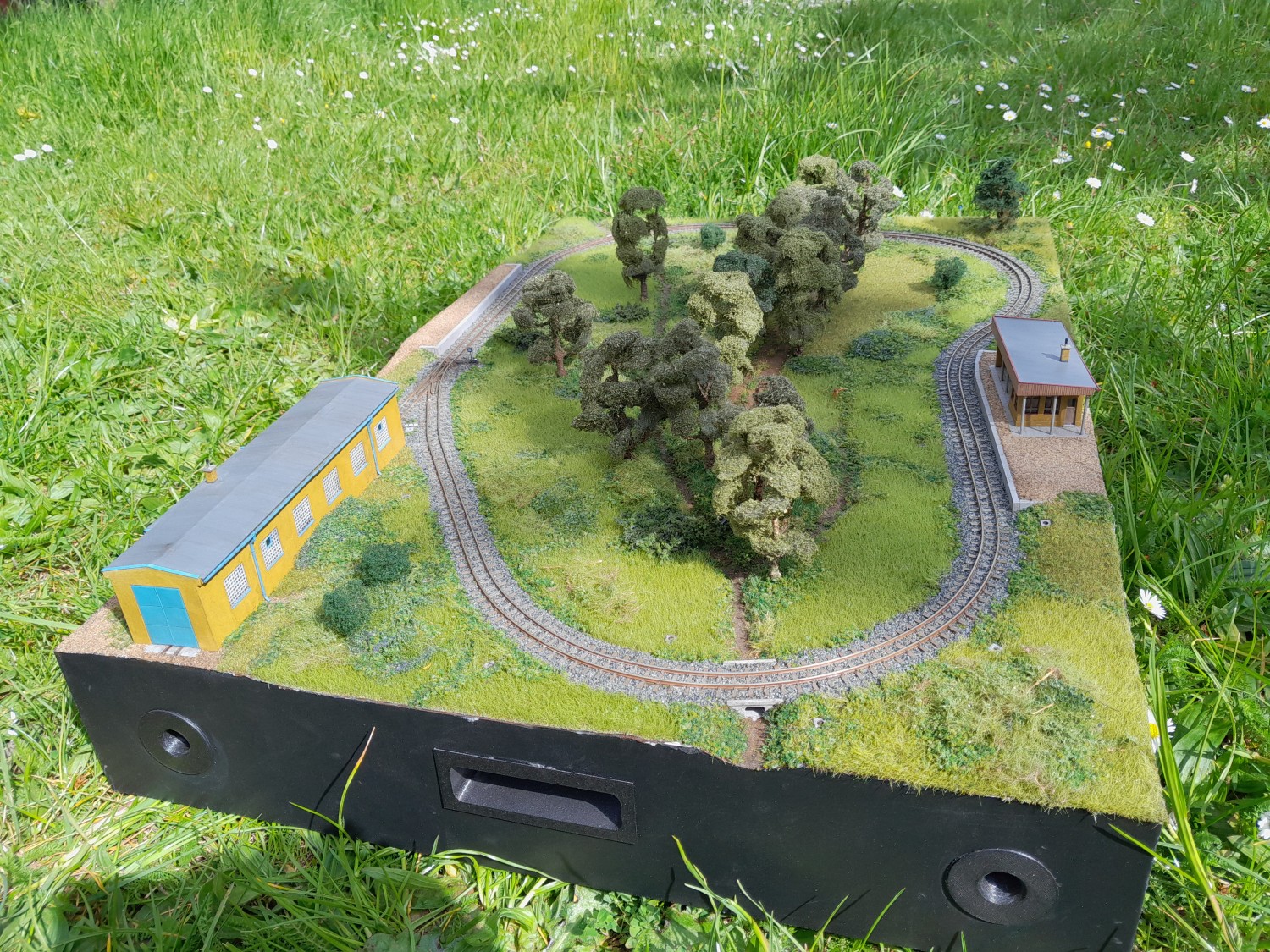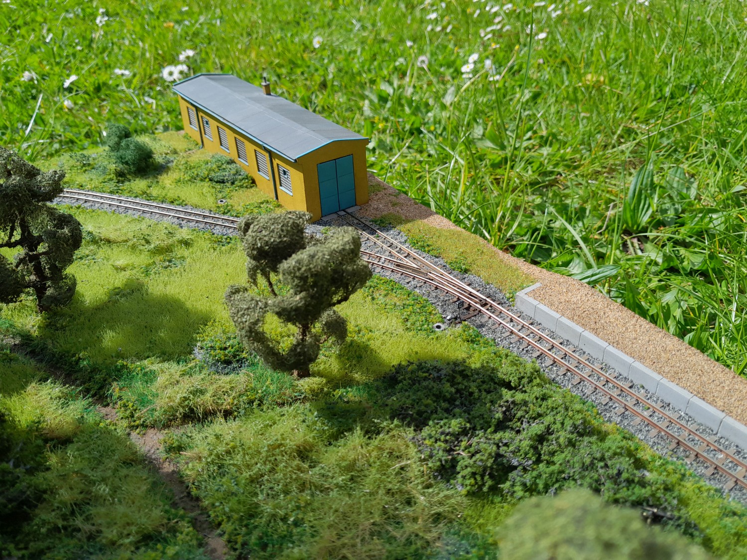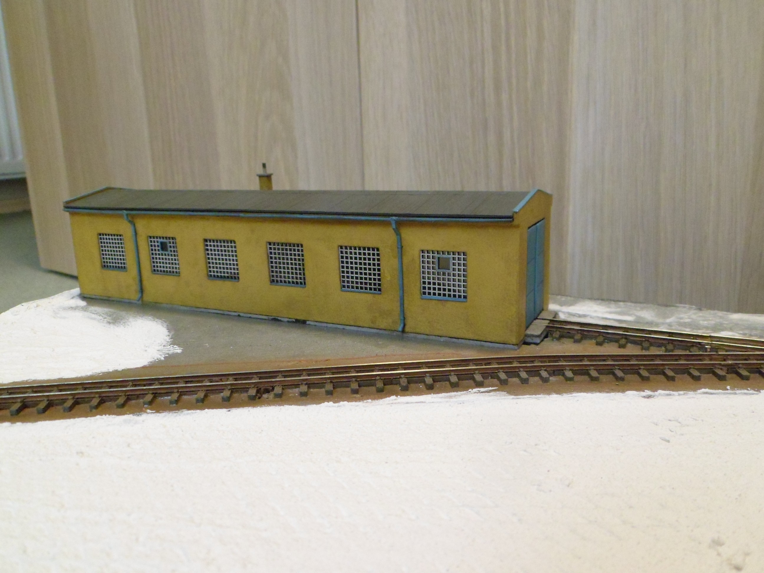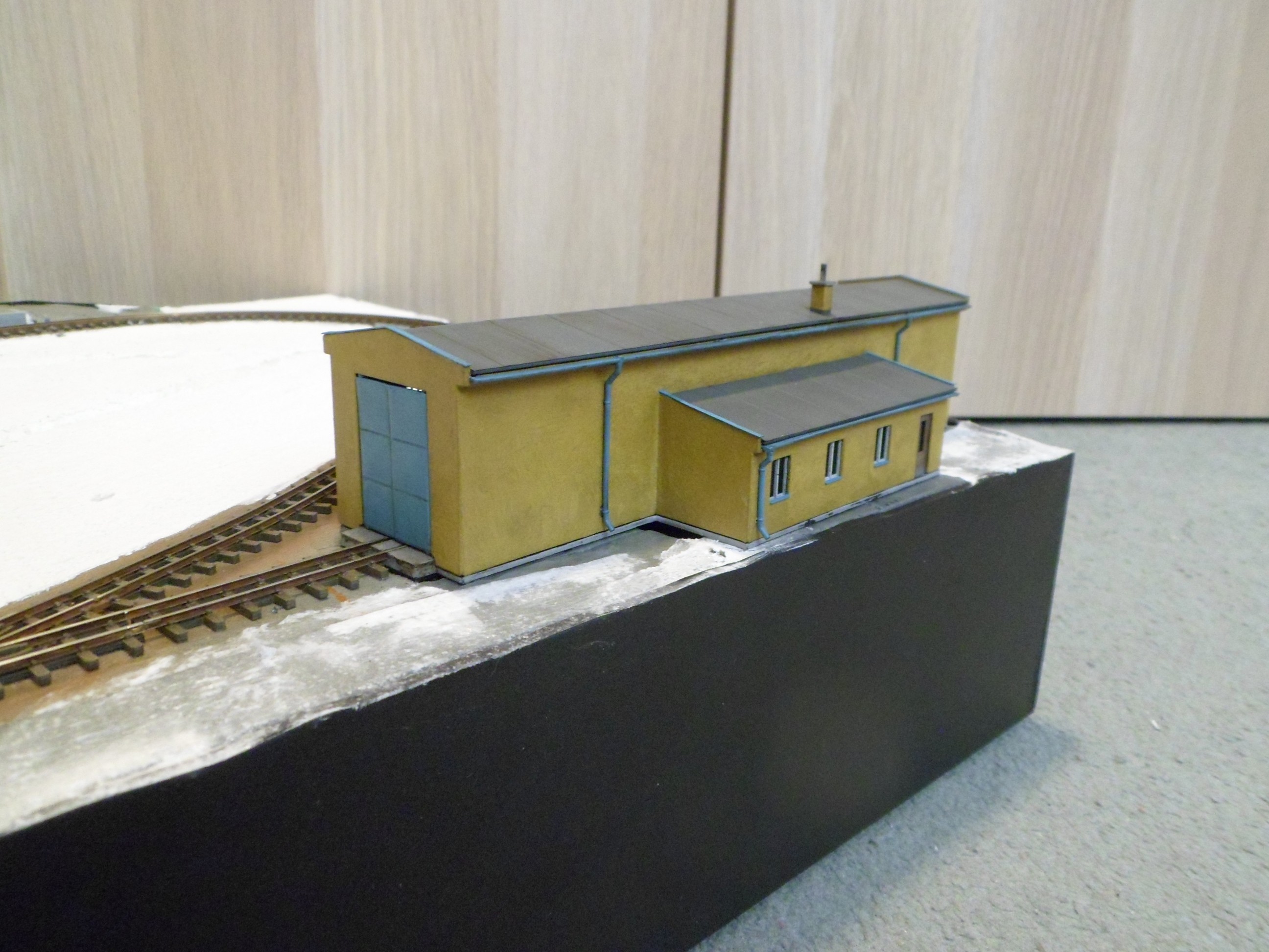 Kolejiště jsem z boku obložil plastovými deskami. Dále jsem pokročil na remíze do té fáze, že jsem ji mohl zabudovat na kolejiště a tím dokončit celé kolejové schéma. Remíza je celá z 3D tisku - základ FDM z PLA, detaily pak SLA.