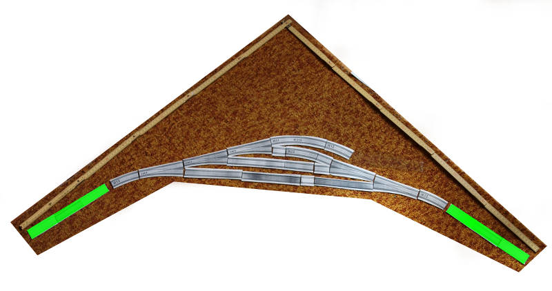 Není to sice nejmenší, ale rozměr 90 x 90 by asi leckdo zkousnul. Je to v TT i na standatrním kolejivu Tillig. Sice ve výsledku není moc prostoru do kraje panelu, ale i tak minimální oblouk zůstal na R 310, tady konkrétně vyhybky EW2 (aby nádražíčko vypadalo reálněji a šťíhleji jako předloha i když bude stejně trochu jiné a zkreslené), použít by šli i IBW. Já bych šel spíš střední cestou a uvažoval o flexi i z toho důvodu že by se líp ladil plynulejší oblouk už přes výhybky, stejně jako je v reálné předloze ale záleží na každém k čemu se přiklání. Při použití EW2 je vnější oblouk kombinace R 353 a 396 nebo zhruba R365 při použití flexi, vnitřní by vyšel přibližně na R 450 při použití flexi koleje, nebo R 310 a zhruba 185 mm rovné koleje. Na nádraží by se měli vejít soupravy o délce zhruba do 340 mm na vnitřní a 400 mm na vnější kolej. skryté nádraží pro 3 soupravy o délce 300 nebo 350 mm, ale to zatím nemám přesně spočítané jestli jsem se nesekl v hrubém výpočtu takže to tu zatím není ... :oops: