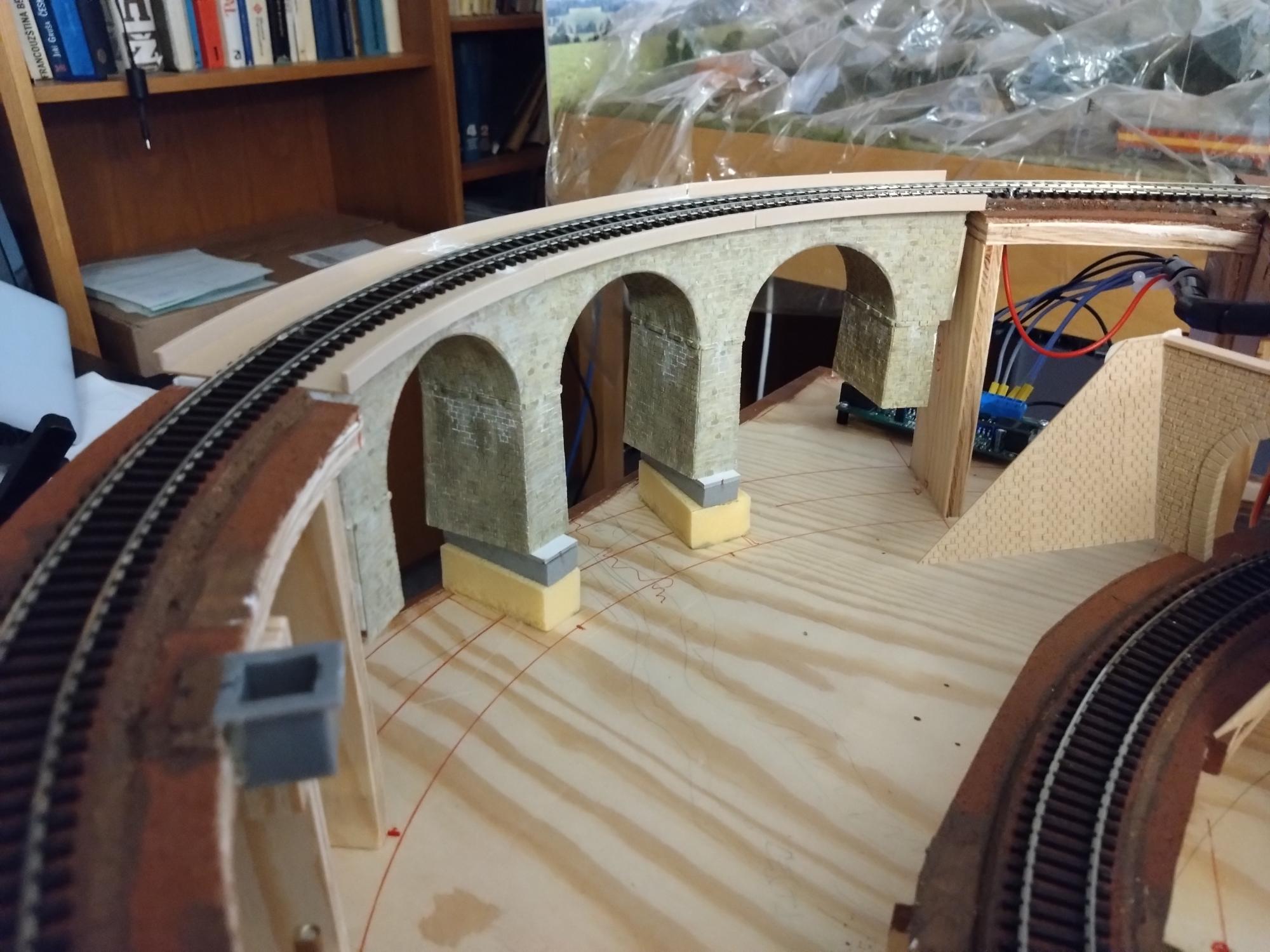 Díky. ten most není ve správné pozici, jen jsem mostovku "narval" tak, aby držela mezi podporami, pilíře ještě nejsou vymyšlené, natož hotové. K průjezdnosti obecně: jsou tam R250, takže šířka mostů je nepřirozeně velká. Hlavně to je patrné na obloukovém. Nejprve jsem to udělal moc natěsno a musel jsem horní část rozšířit. Snad dojem nebude tak zlý po osazení zábradlí a barevném sladění s terénem. Průjezdnost nastavuji tak, aby projel 4-nápravový nákladní vůz a nejvíc ještě motorák M240. Rozhodně ne Y, nebo Bap.