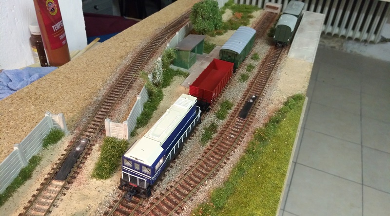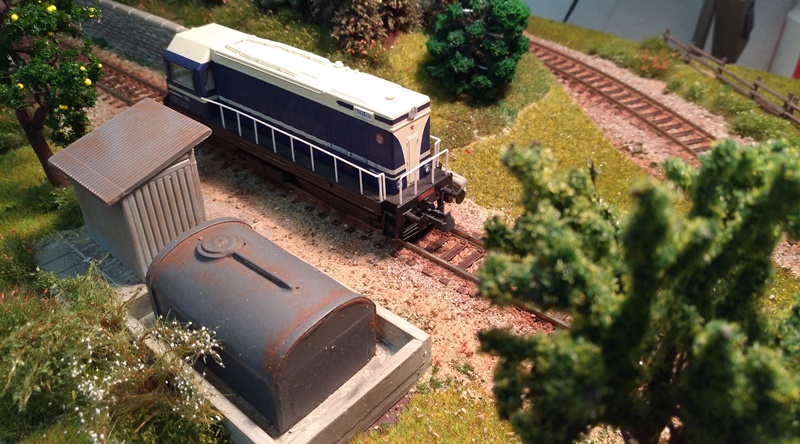 Dnes jsem různými drny a kousky foliáží zašisťoval krajinu a taky, byť amatérsky, napatinoval koleje a tankovací stanici.