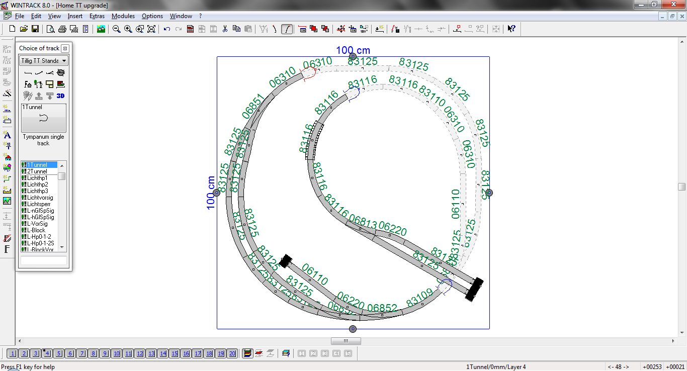 Jinak je hezké, že máš (relativně) tak dlouhé staniční koleje, ale je ti to k ničemu, protože z jedné strany jsi omezen délkou koleje v koncovém nádraží, a pak, když budeš mít delší vlak, vejde se do tunelu jen jeden - takže už to bude opravdu jen "tupé kroužení".