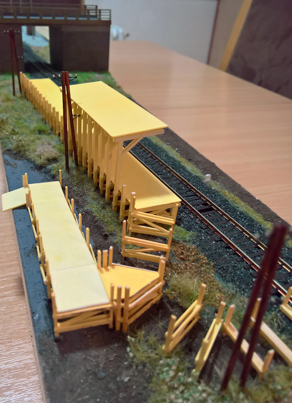 Mimochodem - překvapivě zajímavý prvek kolejiště je viadukt, který při pokládání kolejiště na bok a práci na elektroinstalaci spolehlivě brání překlopení a potenciálnímu poškození...