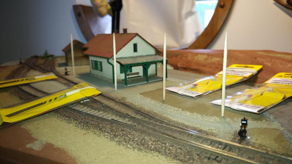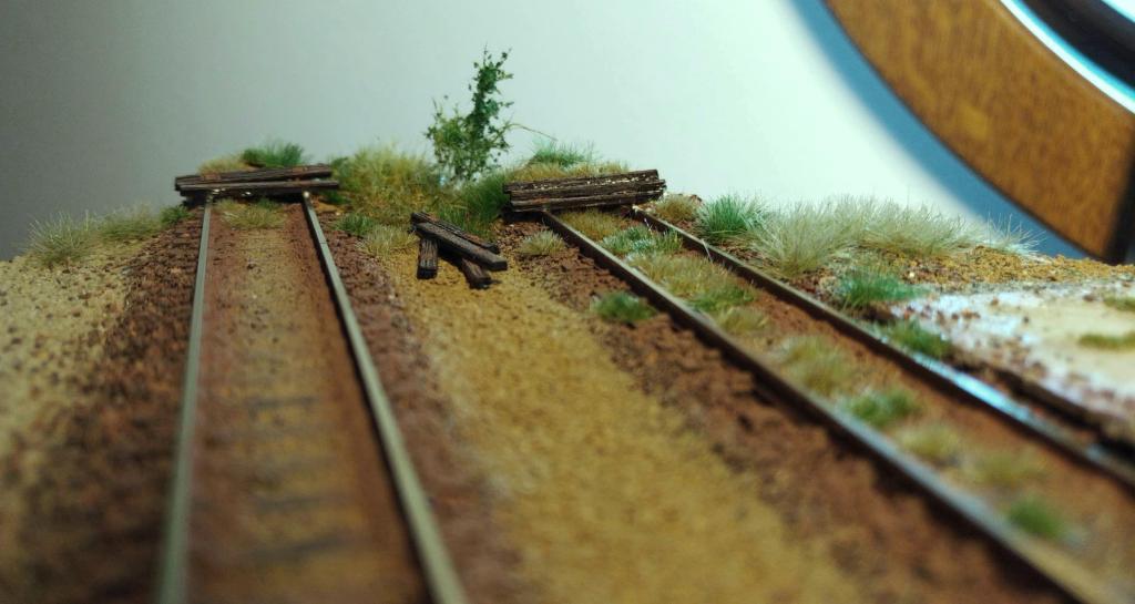 Nedalo mi to, a zkusil jsem na malém kousku, jak by mohly vypadat šturcy. Jen staré pražce a zarostlý násep. Je (a bude to) ještě piplačka, mezi koleje lepím podomácku vyrobené drny, jeden za druhým. Rozhodl jsem se totiž vynechat statiku.
