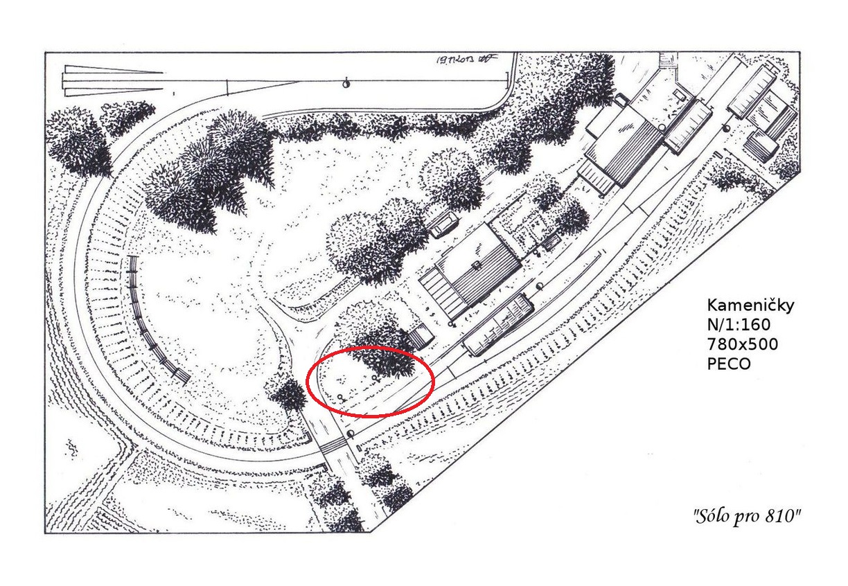 Dávám do banku další a snad poslední verzi. Vycházím z Michalova návrhu, ale poblíž pravého zhlaví tam staniční lampu prostě už nenacpu. Budou tedy dvě, logicky osvětlující šturcy se skládkou a zbrojením naftou (tedy spíš kůlnou se zázemím). Z té původní fotky to není až tak vidět, ale u pravého zhlaví (na Milanově motivu levé - já Kameničky zrcadlově obrátil) bude právě ta příchozí cesta od silnice, osvětlená parkovými lampami. Podobně, jak to je na Milanově návrhu. Silnice holt ostrouhá, případně tam pak dobastlím něco z těch čínských...