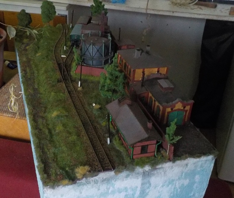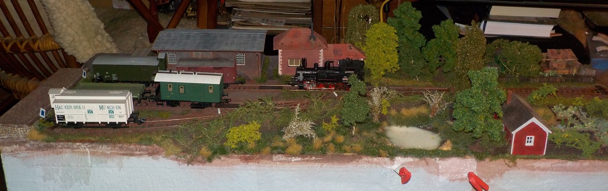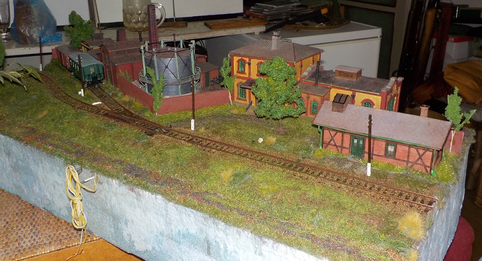 Střihnul jsem si protikus. Hrubá stavba je hotová. Kromě zastávkové budovy od Bartáka a ohradních zdí naporcovaných z desek Auhagen jsou všechny stavby vykopávky z osmdesátek, které od té doby čekaly sestavené na příležitost. Jinak je to 80x30 a momentálně na tom schnou štěrky. Budu muset doladit styčné čelo a spoustu dalších věcí.