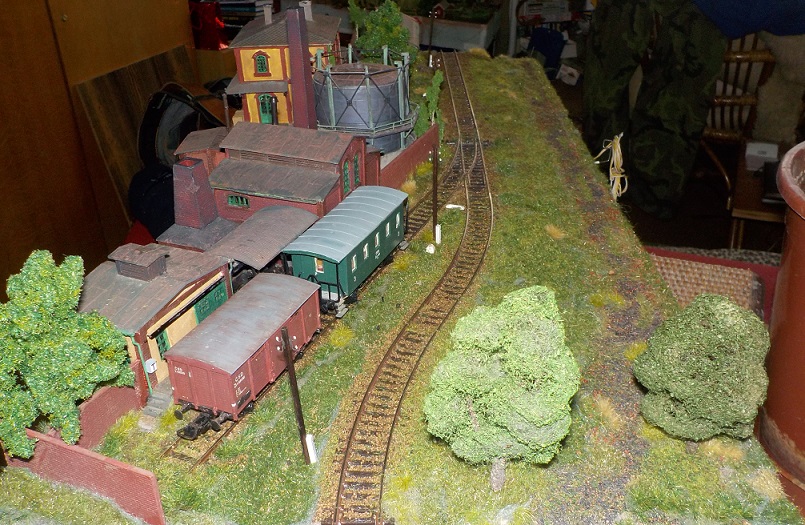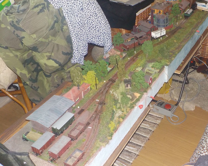 Zejtra to překartáčuju a přeluxuju, začistim koleje a pustim se do detailů. (trámek na šturc/čelní rampu, přechody přes koleje, drny a chomáče trávy, námezníky, doplnění křovin a tak podobně).