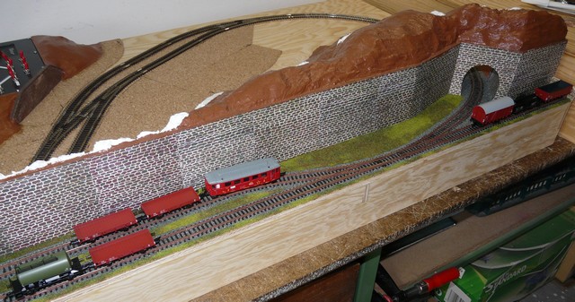 Ještě samozřejmě chybí námezníky u výhybek , značky na šturcech a snad i kamenná obruba díry do tunelu , případně nějaký ten keřík atd. ale to až najednou s viditelnou částí.