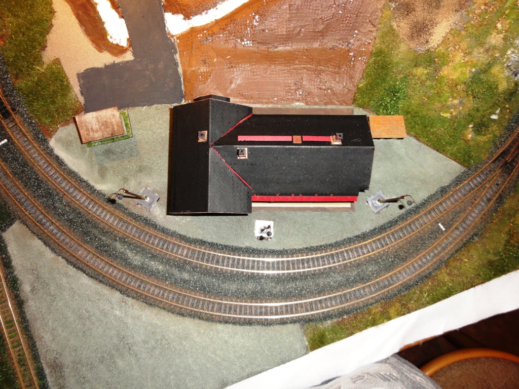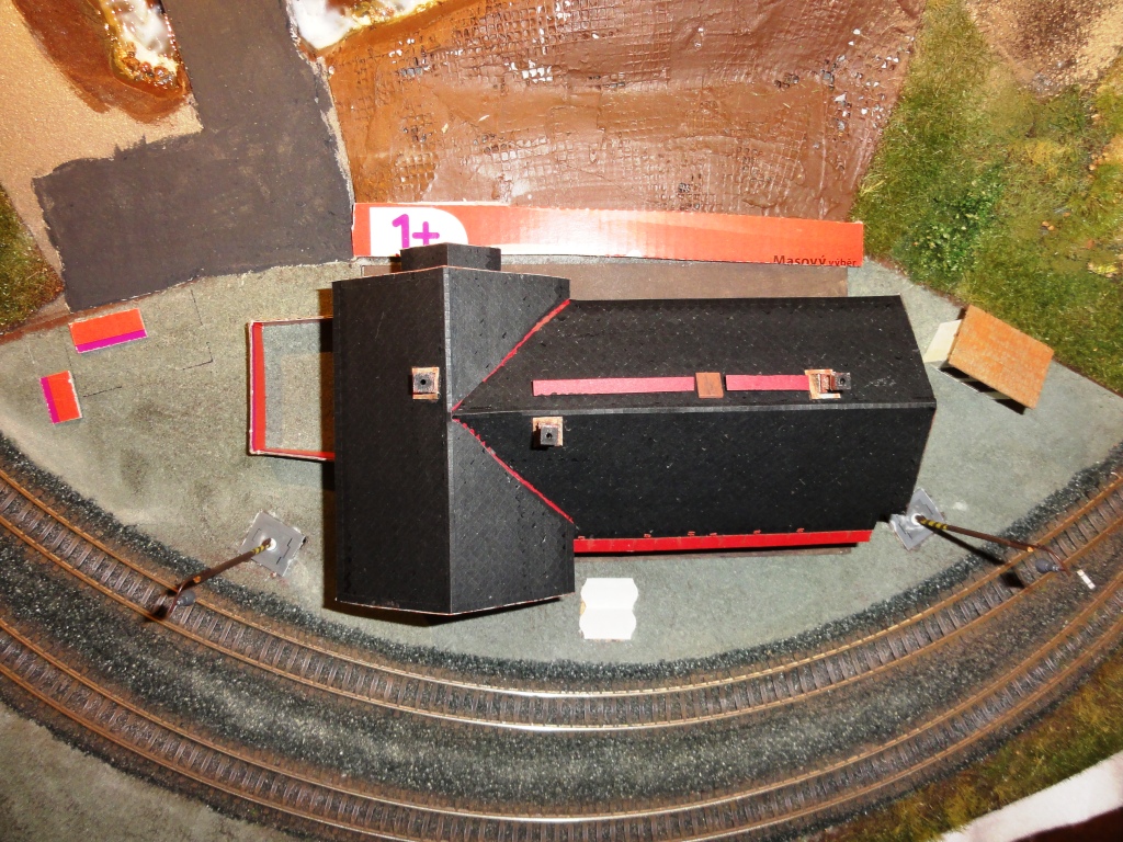 5) matnou černí se "polosuchým" štětcem zatmaví oblast výhybek, zejména srdcovky a přestavovací tyče. Tady mi ještě chybí v těchto místech trochu líznlout i boky kolejnic, prostě si s tím pohrát.