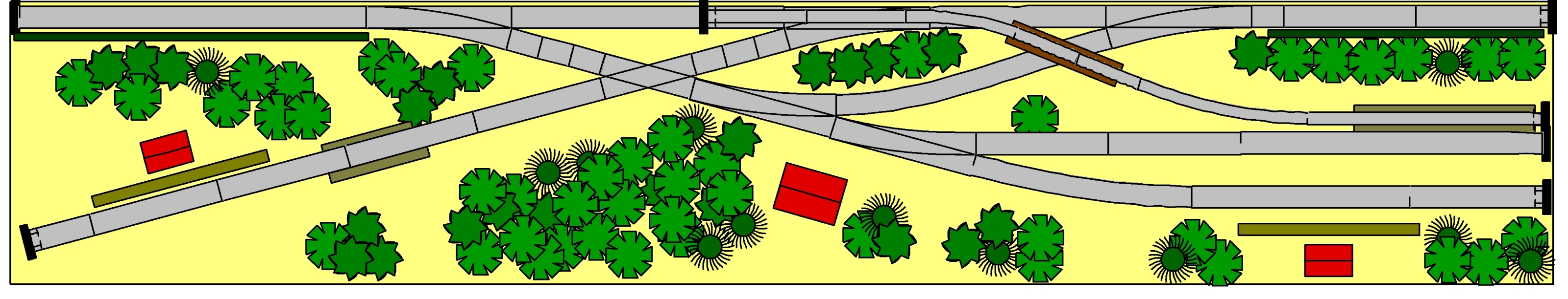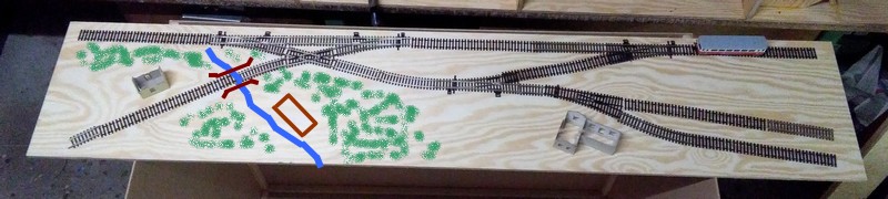 Údolí s mlýnem je momentální nápad. Tunely tam nebudou , jen kulisa stromů. Pod tím křížením je opticky opravdu dost velká nevyužitá plocha. Jelikož úplná placka s kopečky není tak hezká jako když je k tomu i nějaký dolík. Ten mlýn je jako příklad a možná je moc veliký. Pak ho zkusím zmenšit nebo udělat jako polozbořený. Pokud by se přece nevešel tak tam může být nějaká lesní roubenka apod. Zalesněné údolí oddělí obě poloviny úplně stejně jako kopec.