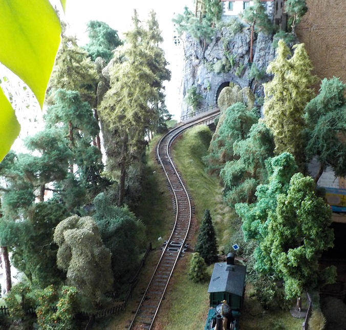 Prořezávací komando včas nedorazilo, asi ho zakázali aktivisti, nebo neshody s majiteli lesů.... Ostatně v reálu by těch šest metrů bylo od kmene, nebo od větví? Na Šumavě není radno vystrkovat cokoliv z okna, aby to neskončilo ve větvích a někde měly větve tendenci přistoupit za jízdy. Samozřejmě chápu, že by vzhledem k epoše a předpisům mělo být do jisté vzdálenosti od trati "golfové hřiště", ale pak bych potřeboval mnohem větší šířku dílce. U prvotního šoupaliště se s lesem nepočítalo, zato u lokálky se už kalkulovaly rozměry podle šoupaliště.