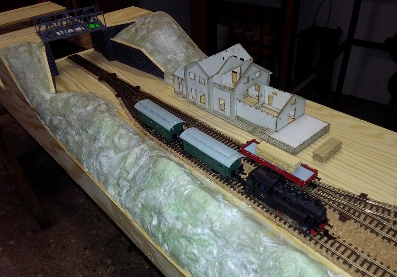Tempo zas tak závratné není a koleje jsou položeny jen na sucho. Měl jsem měl teď trochu více času. Následovat budou práce co nejsou tak vidět a jdou pomalu. Hrubá stavba bude taky delší dobu konečná ,protože mě čeká drátkování a bastlení Arduina kterým bych to chtěl ovládat. :oops: