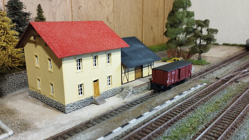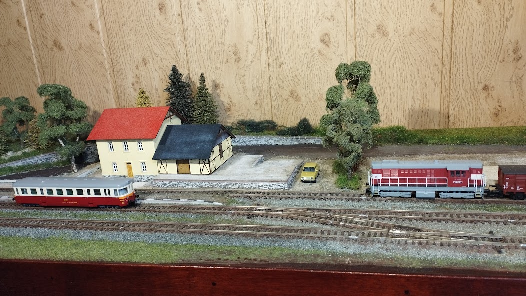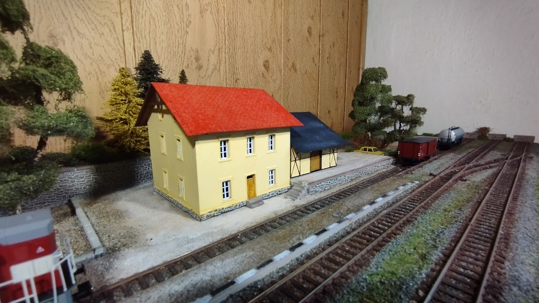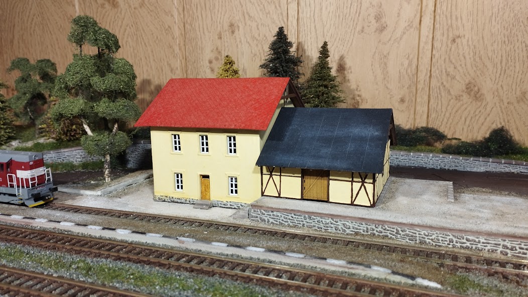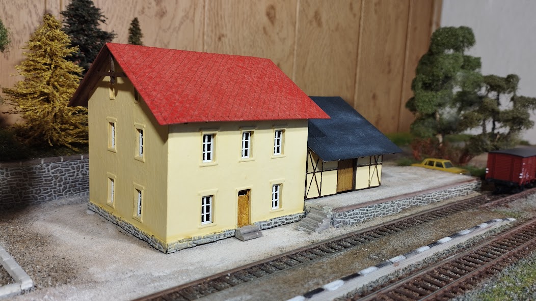 VB se skldaem tam sednou pěkně, jen takamenná podezdívka (i když podle otvoru dveří to je spíš už i obklad zdi...) vysoké jako rampa vedle působí divně... osobně bych VB ( přesněji podezdívku samotnou neboli výšku podlahy v přízemí) posadil níž, klidně o jeden až dva schody pod dveřmi, asi by stačilo zvýšit dveře směrem dolu (spodní patro VB bývalo často vyšší než klasické obytné), pokud není imitace kamene už nalepená napevno na zdi (trhat ji dolu by asi nebyl dobrý nápad), ale trochu by to schovalo asi i přebarvení...