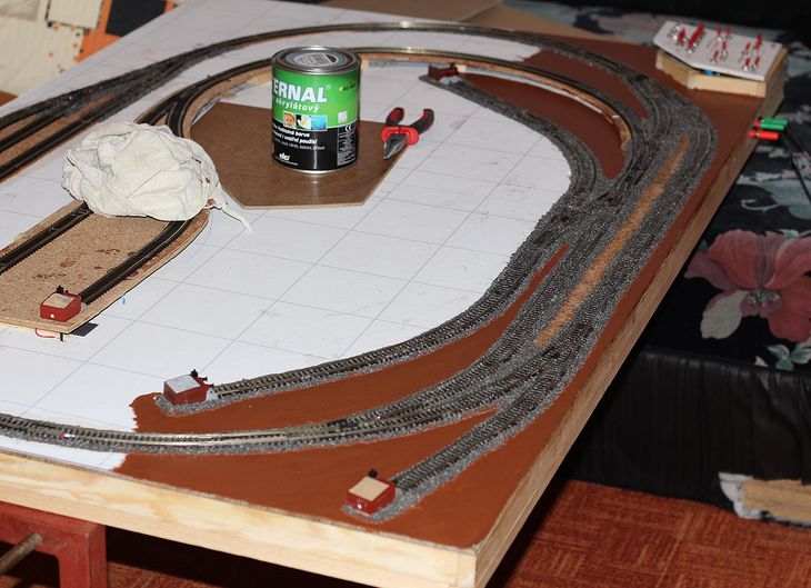 Po elektro-kontrole (trochu si pojezdím) začnu štěrkovat (ale nevím zda-li je lépe instalovat do stanice drážní osvětlení a poté zaštěrkovat nebo naopak)