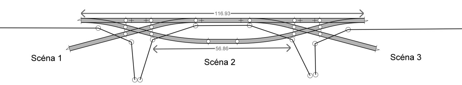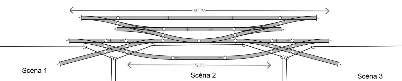 Scéna 1 a 3, klasicky dle MSFJF systému. Scéna 2 umožňuje přidat průjezdní stanici / přejezd / cokoliv.