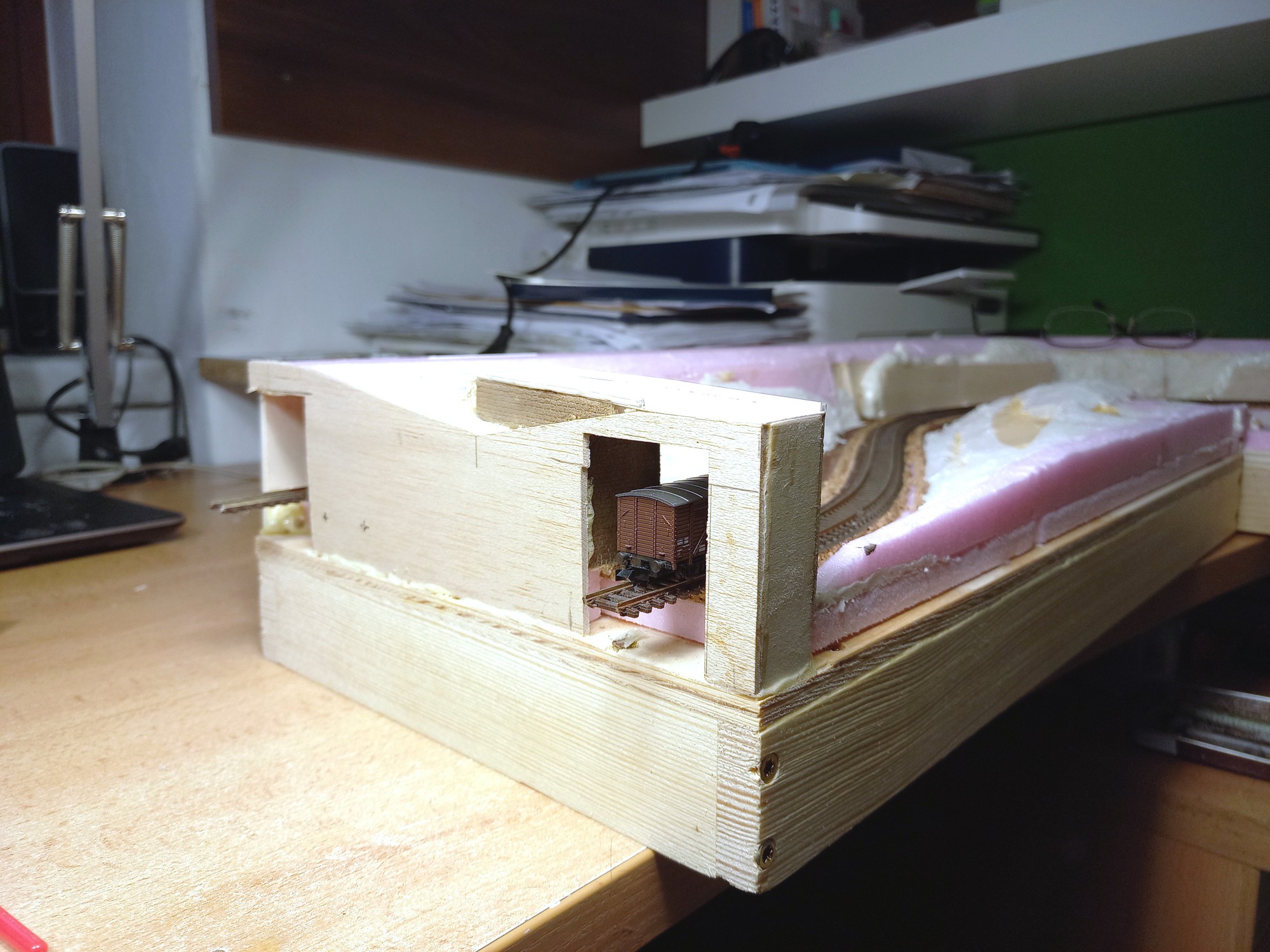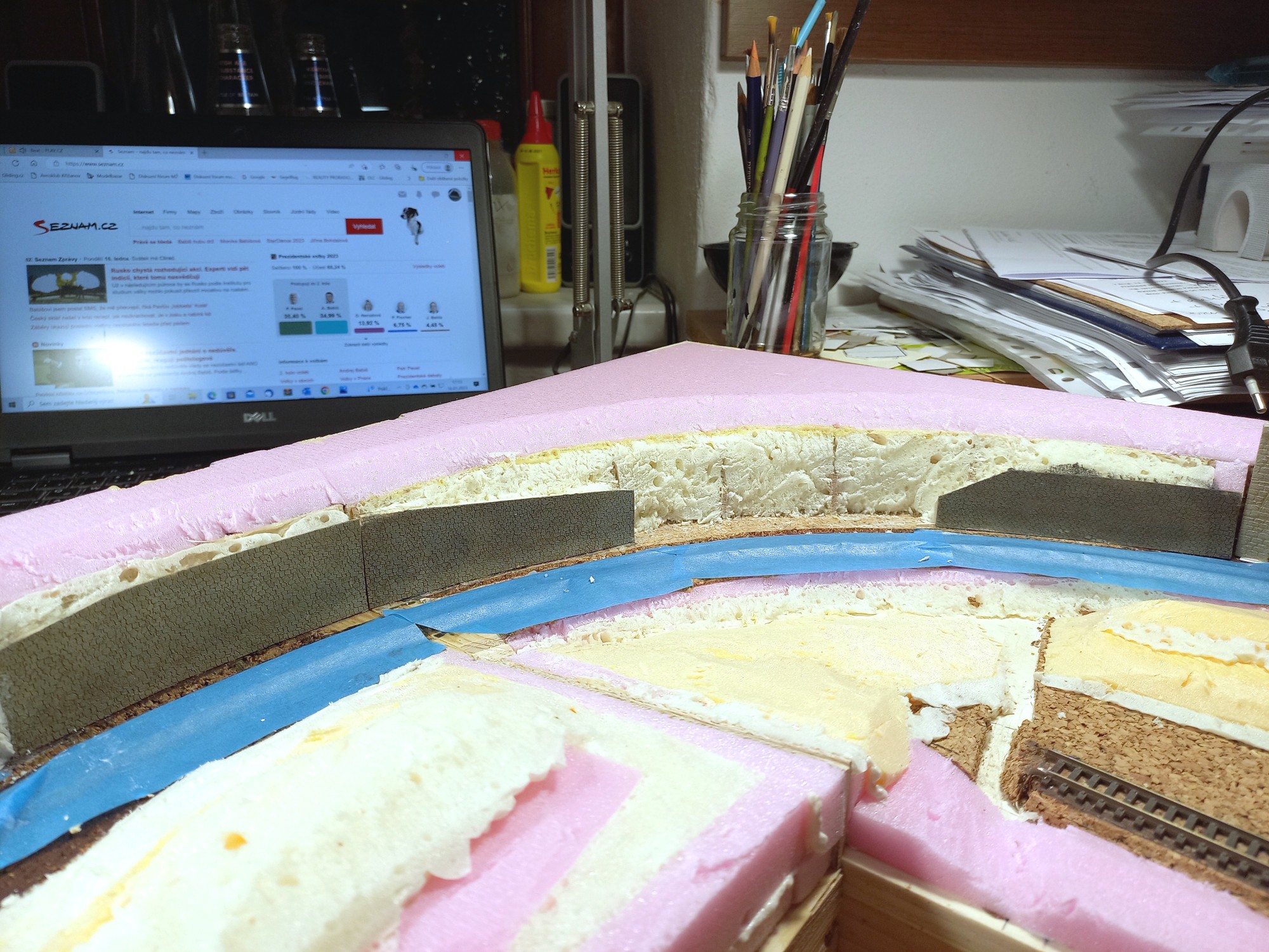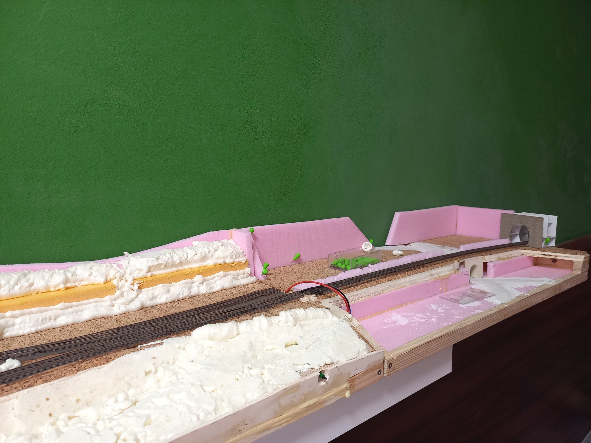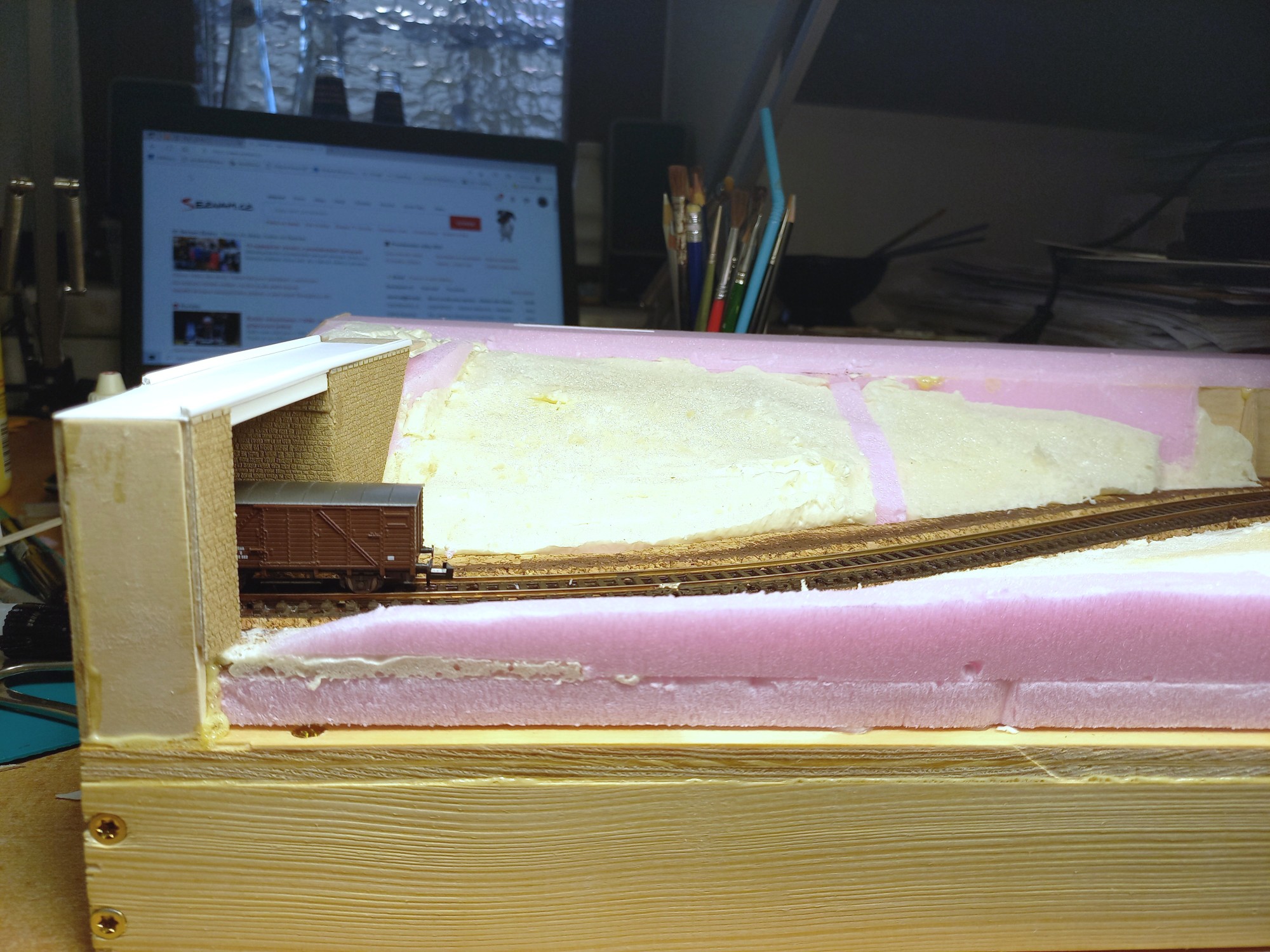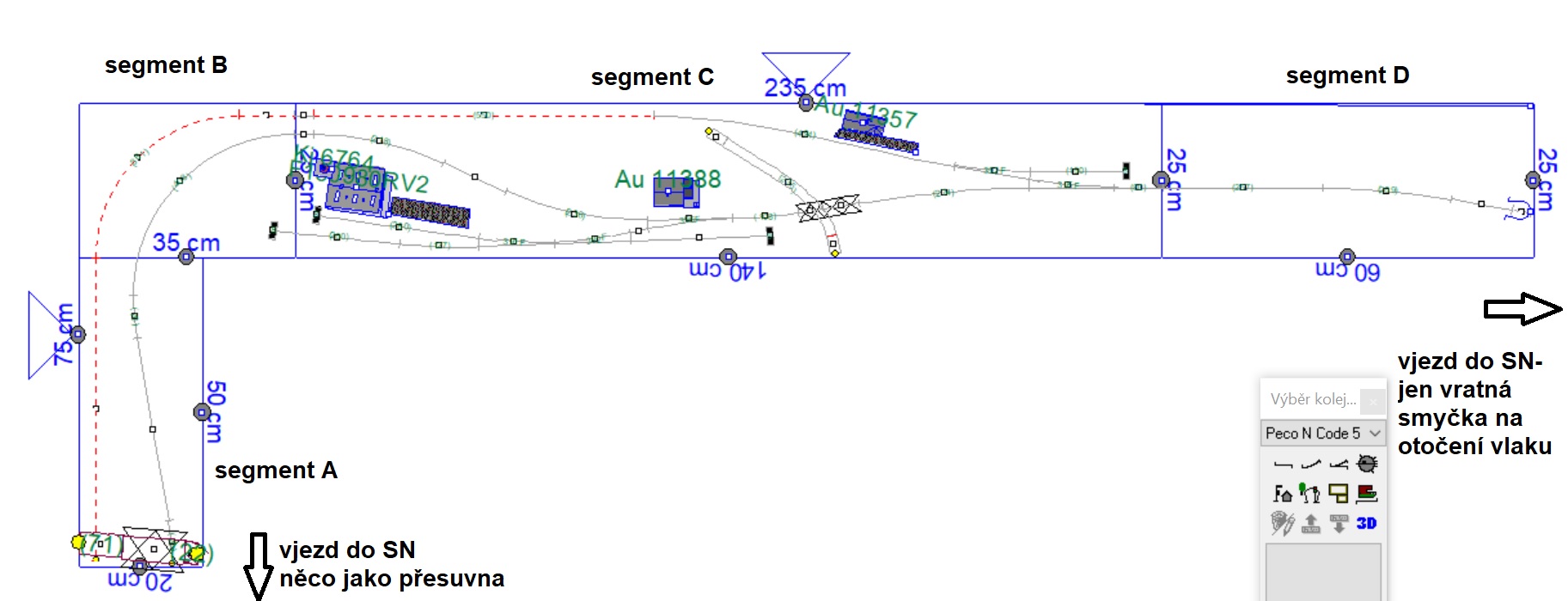 Až dojde na ty SN, zamyslím se nad tím a uvidíme. V každém případě napravo je místa více, vejde tam ta otočka, asi i 1-2 koleje navíc. Vlevo už ne, tam je místo pro panel cca 70x25cm, který se bude muset oddělávat když se nebude jezdit. Původně to měl být vůbec jen jeden segment jako diorama, rozšířil jsem, aby toho na koukání bylo více. Já jsem více "stavěč" než "jezdič", tak asi tak