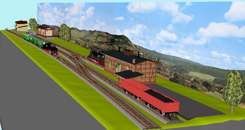 2. Eibenstock Stadt byla koncová stanice krátké saské lokálky odbočující z tratě Aue - Adorf, tj. z údolí řeky Zwickauer Mulde. Její stoupání bylo až 50‰, takže patřila do kategorie tzv. Steilstrecken, tj. strmých místních drah se sklonem nad 40‰, které se řídily zvláštními předpisy. (Traduje se, že pro saské stavitele byla vzorem česká lokálka Ostrov - Jáchymov.) Vždy se tu jezdilo jenom adhezně, ale lokomotivy do kopce také tlačily; při jízdě dolů bylo vjezdové návěstidlo do žst Eibenstock unterer Bahnhof trvale na stůj, vlak u něj musel zastavit, strojvedoucí to musel do žst oznámit píšťalou a teprve až pak dostal volno pro vjezd. Na trati se objevilo všechno možné, od původně saských tendrovek řady 89.2 přes pruské "kostitřasy" řady 89.0 ex T 8 až po saské pětispřežky řady 94.19-21 s Riggenbachovou brzdou. (BTW, modely všech tří lok. řad jsou k dispozici v TT: 89.2 od PMT, ostatní od Beckmanna.) Všechny vlaky byly smíšené, hodně dlouho po válce - ještě v 60. letech - tu jezdily provizorní válečné osobní vozy (Behelfspersonenwagen) řady MCi 43 (také k dispozici v TT, dokonce hned od několika výrobců - Hädl, Tillig, Lorenz, Busch). Motorová trakce tu nikdy v provozu nebyla a všechny vlaky až do konce provozu v r. 1975 byly vedeny jako smíšené.